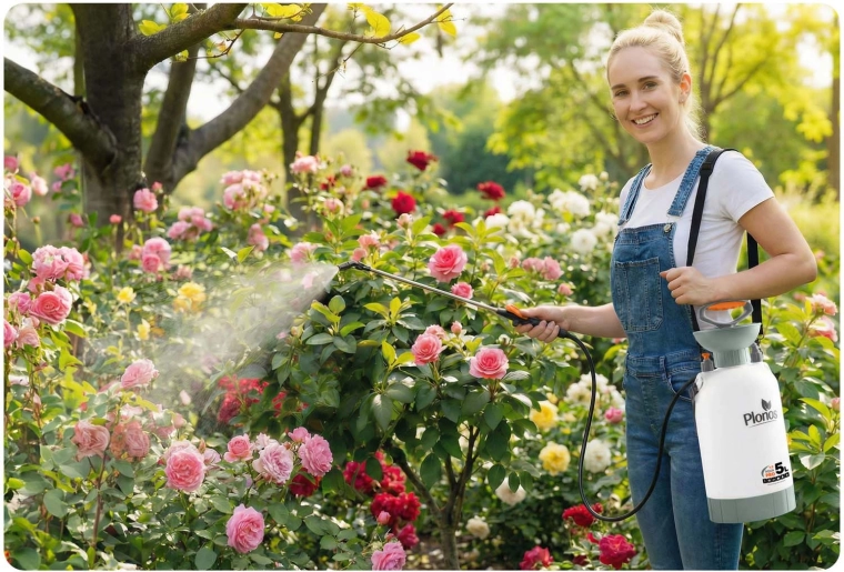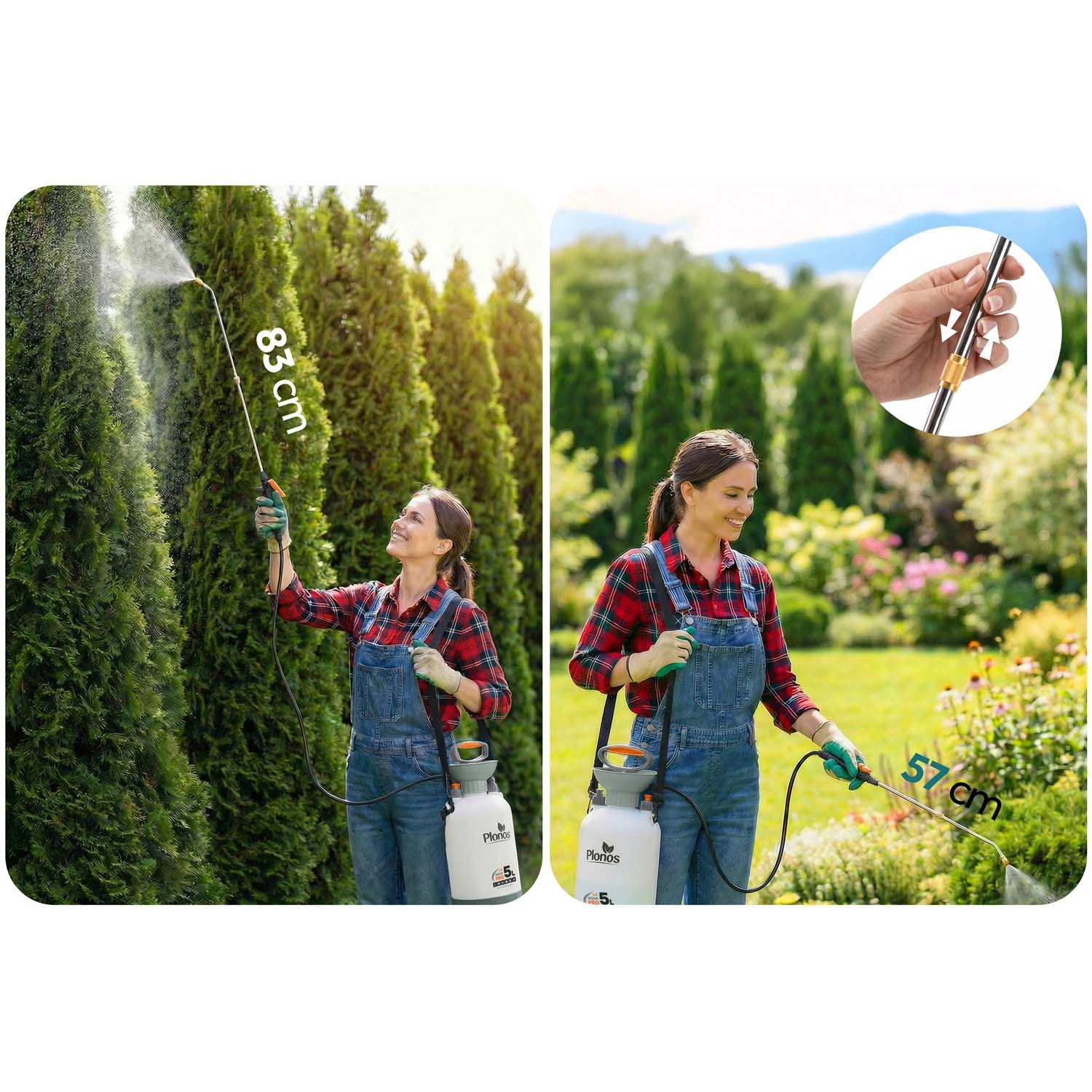 Le pulvérisateur offre une diffusion contrôlée et uniforme avec une pression jusqu’à 2,76 bar et une régulation continue du débit – de la fine brume au jet puissant. La lance télescopique de 57–83 cm vous permet d’atteindre aisément les arbustes et les zones difficiles d’accès sans vous courber inutilement. Un excellent choix pour l’arrosage, l’application d’engrais et la protection des plantes contre les ravageurs.