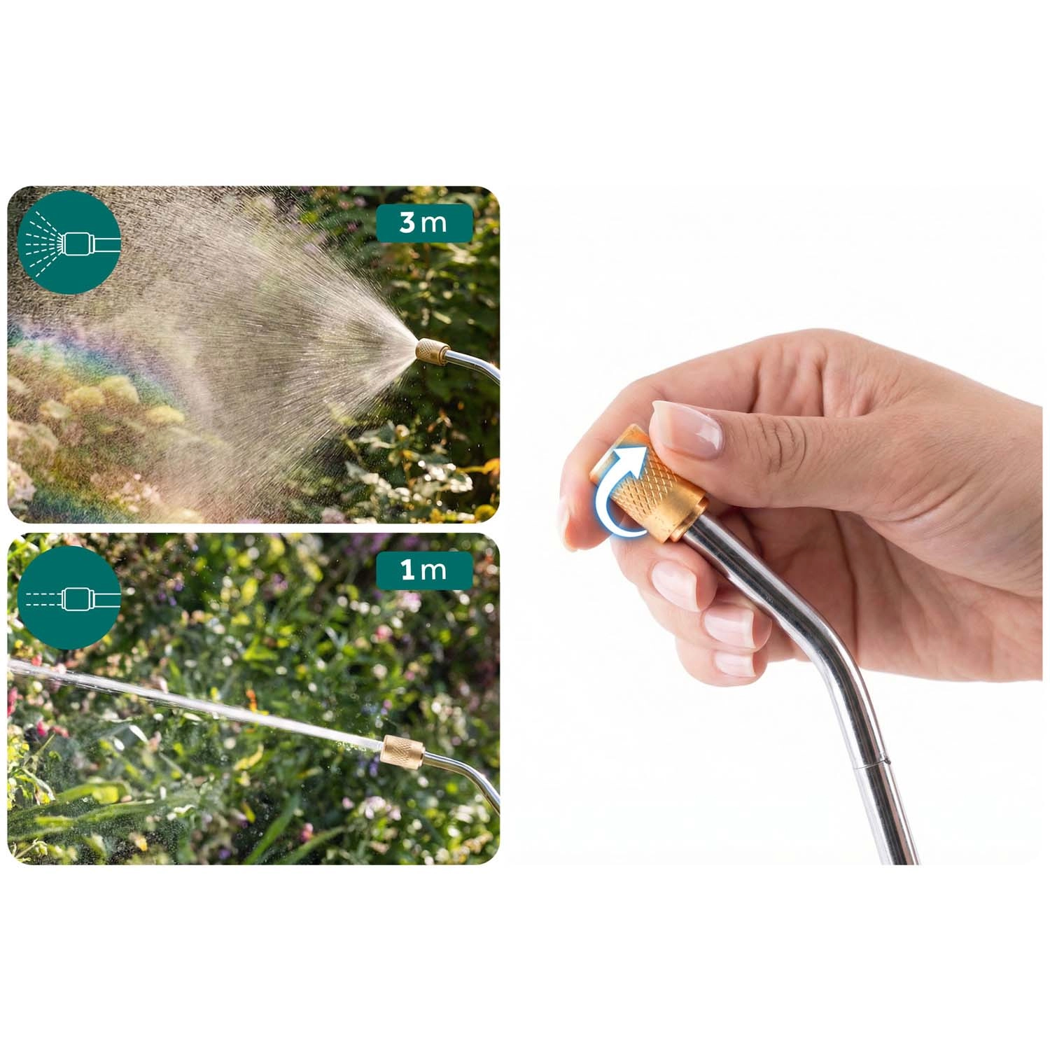 La conception métallique résiste aux produits chimiques et à l’usure. Passez en continu d’une fine brume à un jet puissant et adaptez la pulvérisation à chaque tâche.