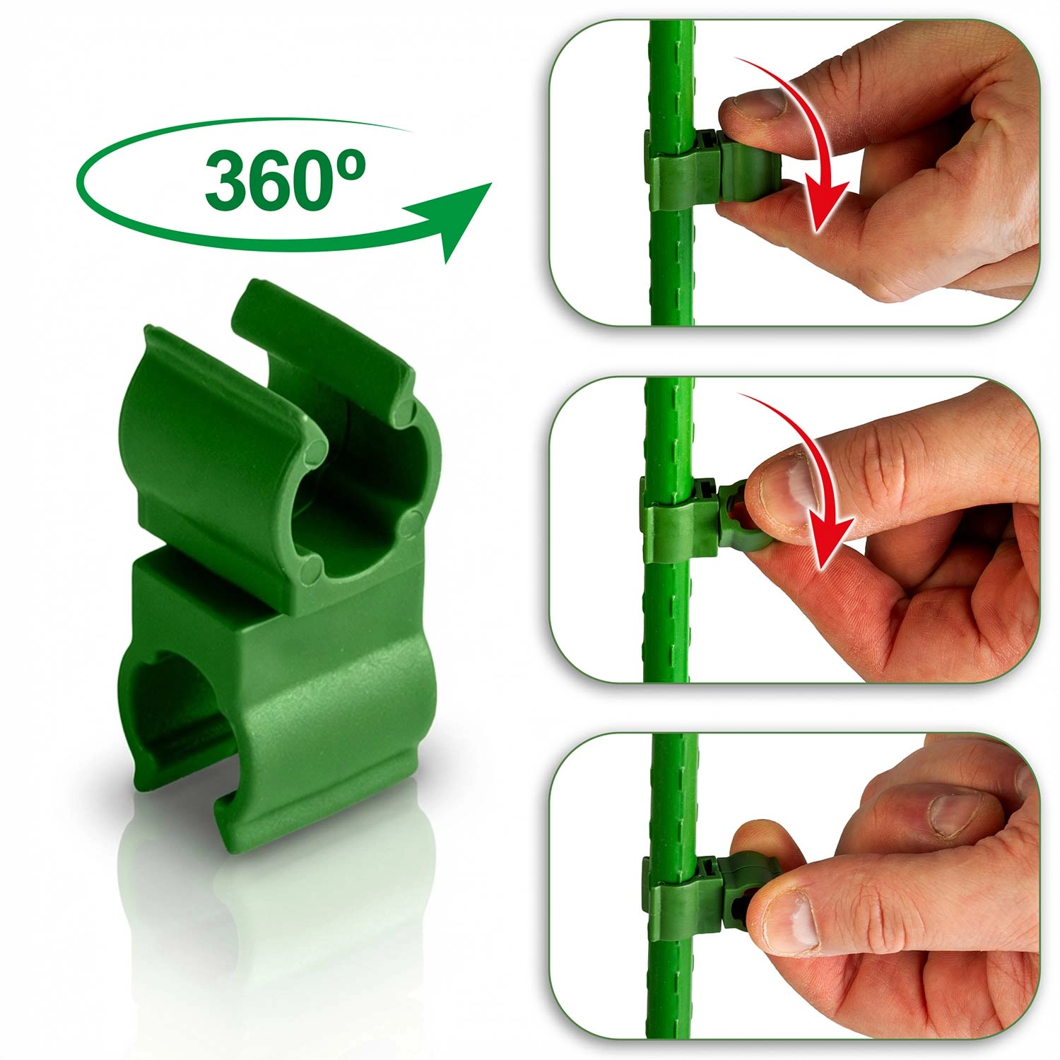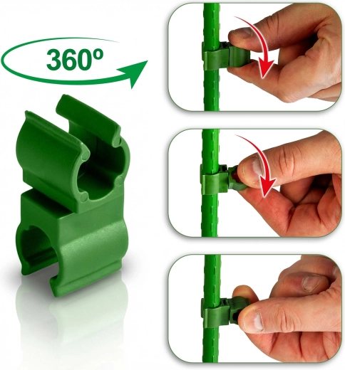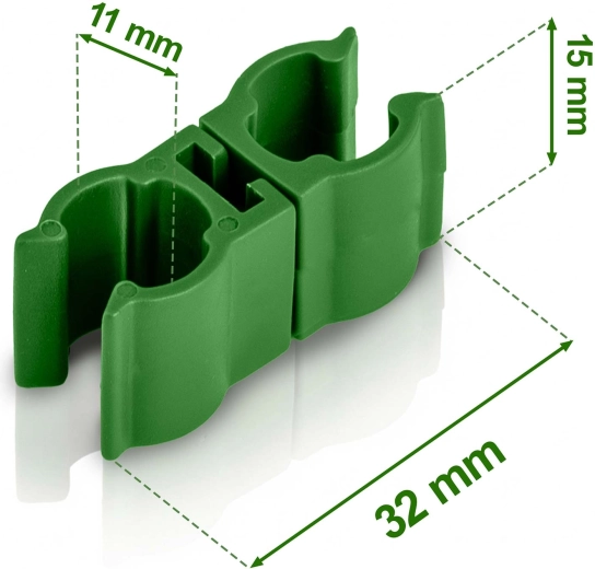 Pratique lot de 10 connecteurs verts de type 2 pour tiges de 11 mm de diamètre, permettant de construire rapidement et solidement des supports pour tomates et autres plantes grimpantes. Grâce à la structure rotative à 360°, réglez facilement l’angle de jonction, créez des structures stables et gagnez de la place au rangement. Le diamètre universel convient aux tiges en bambou, acier et plastique.