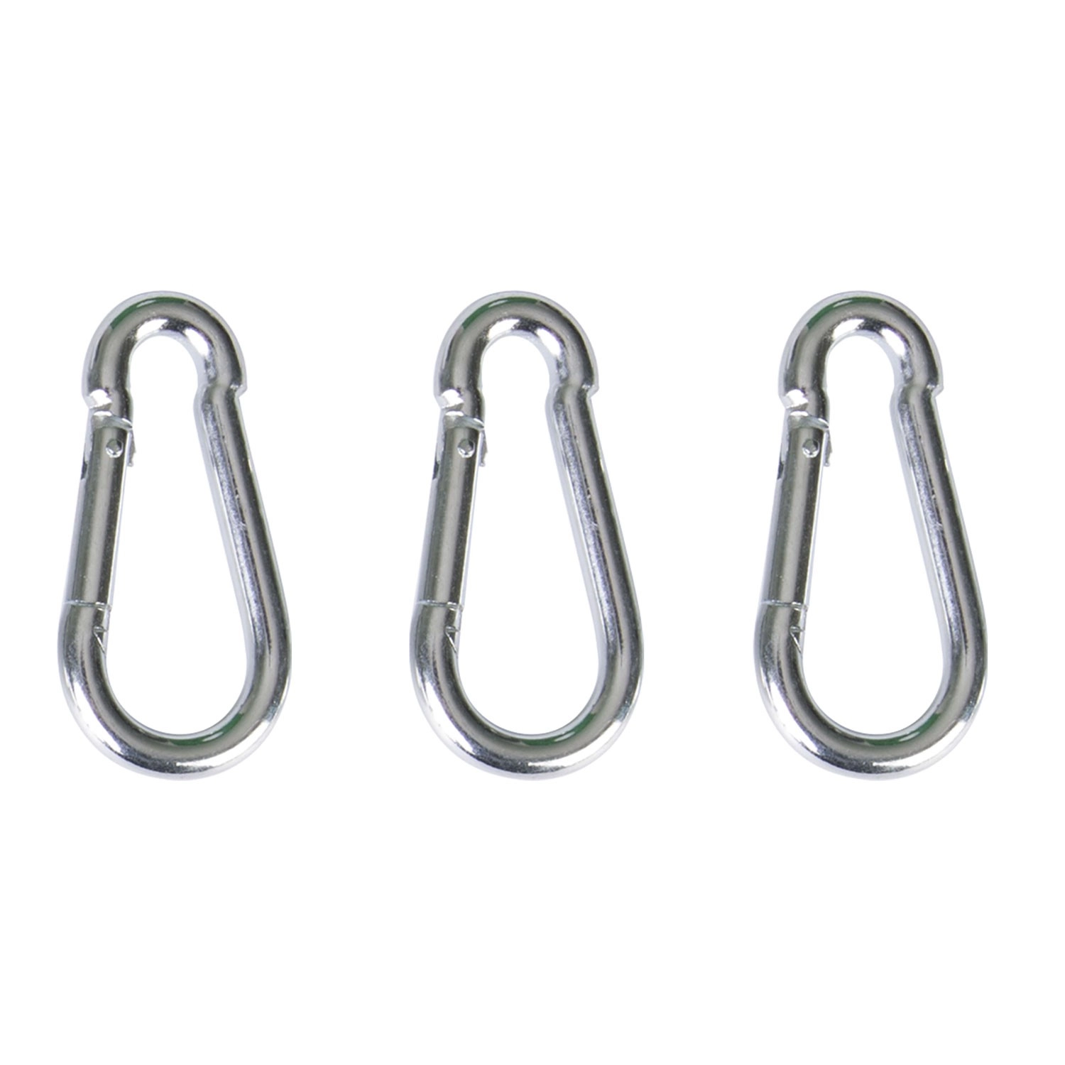 Trois mousquetons robustes à ressort autobloquant facilitent la suspension et le remplacement des accessoires. Convient pour chaînes, œillets et cordes.