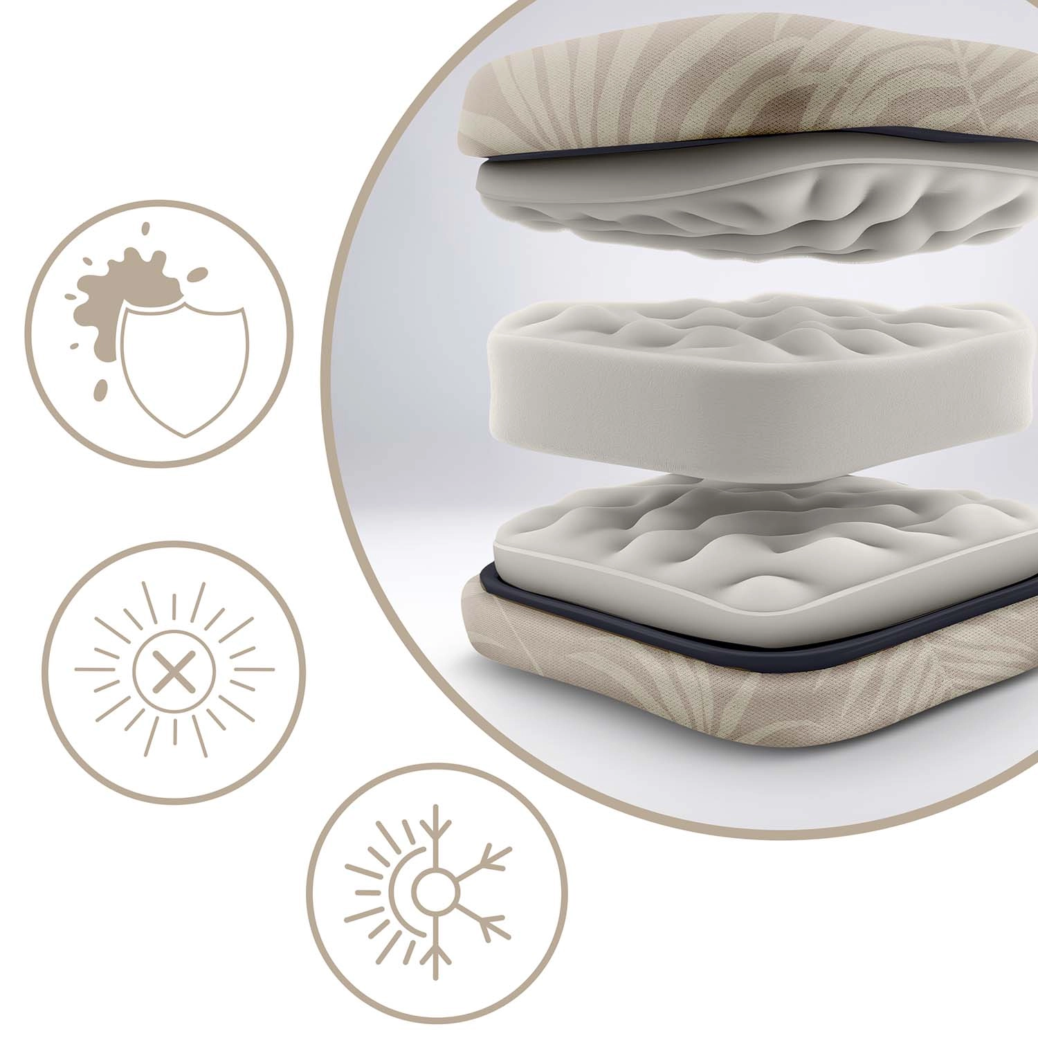 • Confort exceptionnel : coussin souple, élastique et matelassé avec appui-tête pour ménager la nuque.