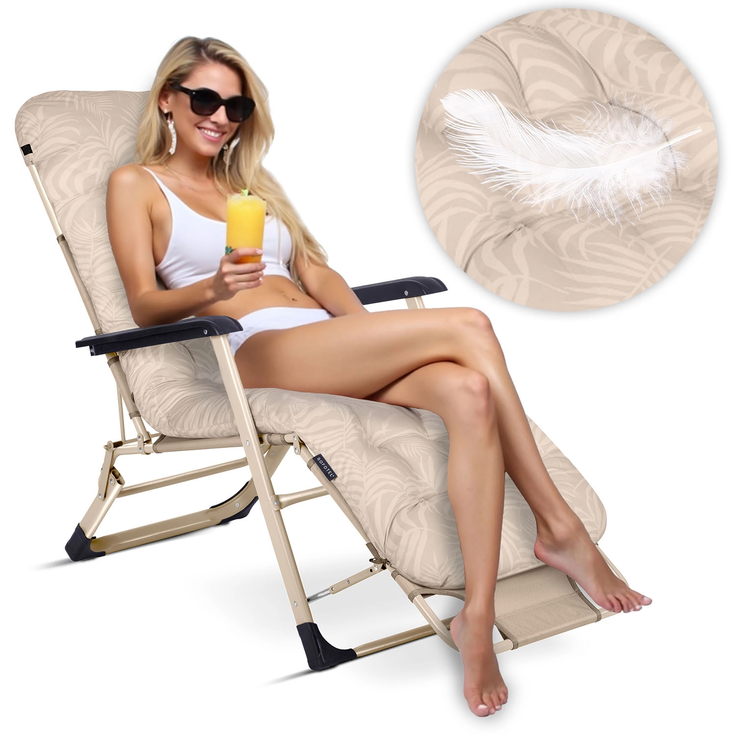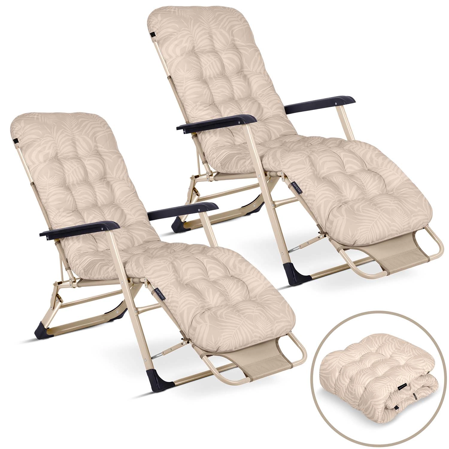 Chaise longue de jardin pliante avec coussin Sofotel ChillWell, lot de 2, beige