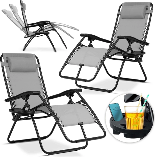Chaises longues de jardin pliantes avec coussin Sofotel ChillWell, lot de 2, gris