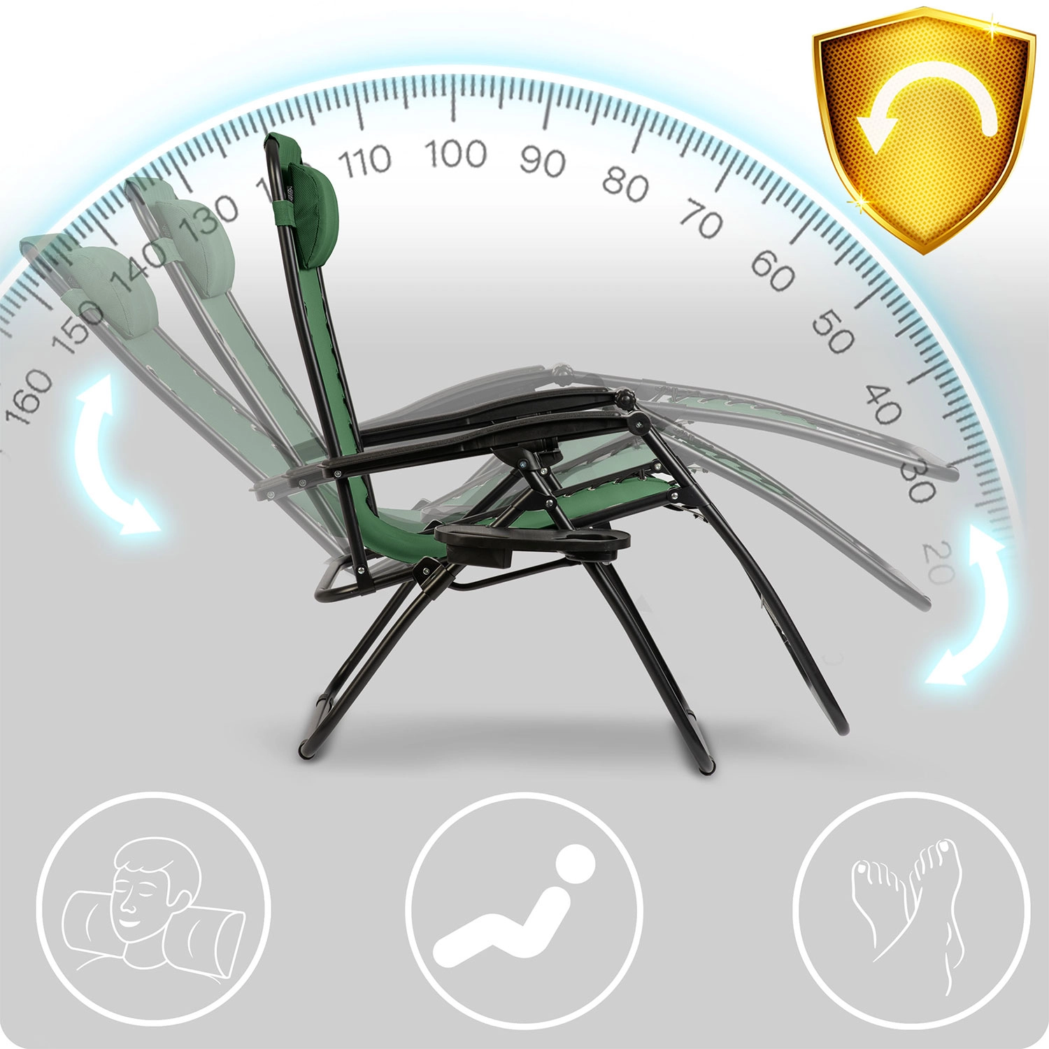 Le dossier réglable permet d’adopter une position ergonomique avec les jambes à la hauteur du cœur – favorise la circulation sanguine et soulage la colonne vertébrale.