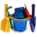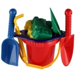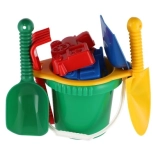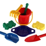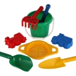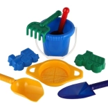 Comprend tous les outils nécessaires pour construire et jouer de manière créative dans le sable - seau, tamis, pelles, râteaux et deux moules à sable.