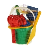 Ce kit de sable en plastique contient divers outils et formes pour des constructions et créations fantastiques. Grâce à son emballage pratique dans un filet de dimensions 20x28x12 cm, vous pouvez facilement transporter l'ensemble complet.