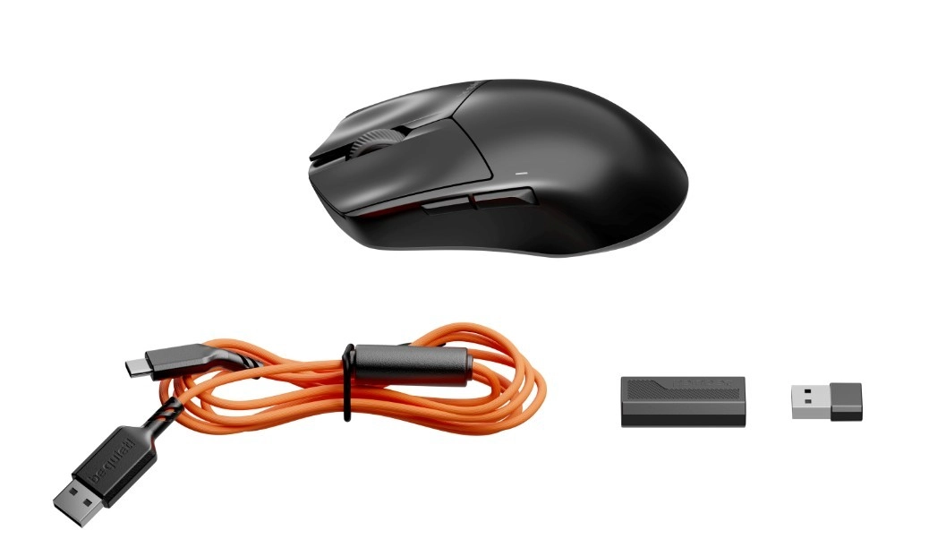 Les switchs optiques Omron assurent des clics rapides, souples et silencieux sans délai de debounce. Les patins en PTFE aux bords arrondis offrent une glisse soyeuse sur tout tapis. Via le be quiet! IO Center, ajustez facilement le DPI, le LOD, le taux d’interrogation, le mapping des boutons et les macros, puis enregistrez‑les dans la mémoire intégrée.
