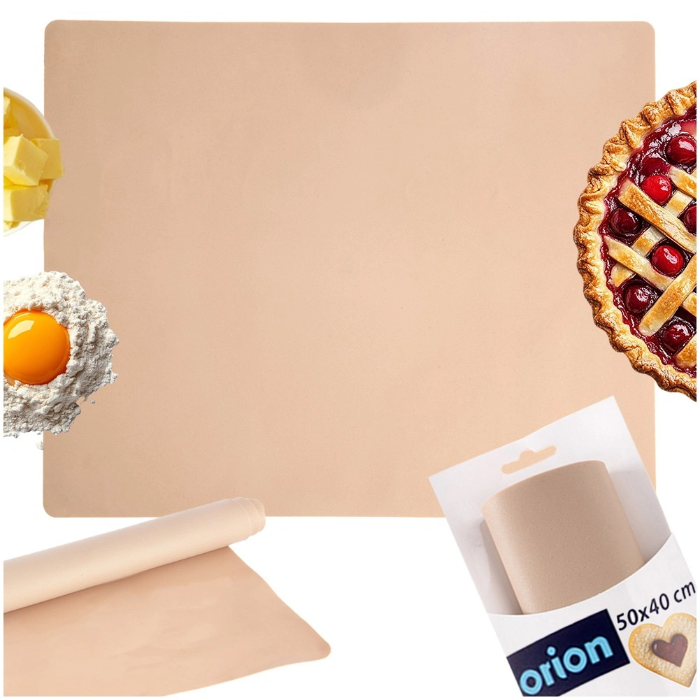Tapis en silicone pratique pour la pâtisserie et l’abaisse de dimensions 50 × 40 cm, qui adhère parfaitement à la table et ne glisse pas. Offre une surface antiadhésive pour étaler la pâte, presque sans ajout de farine. Résistant à la chaleur de -40 °C à +220 °C, adapté au four, au lave-vaisselle, au congélateur et au micro-ondes. Facile à nettoyer et peut être enroulé pour un rangement compact.