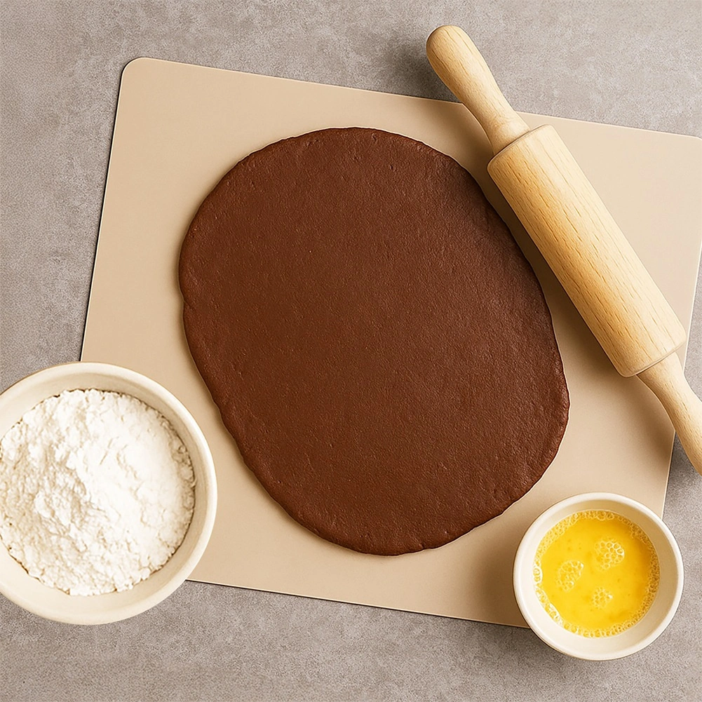 La pâte ne colle pas au tapis et nécessite un minimum de farine. Idéal pour tartes, biscuits et pizza – un travail propre sans désordre.