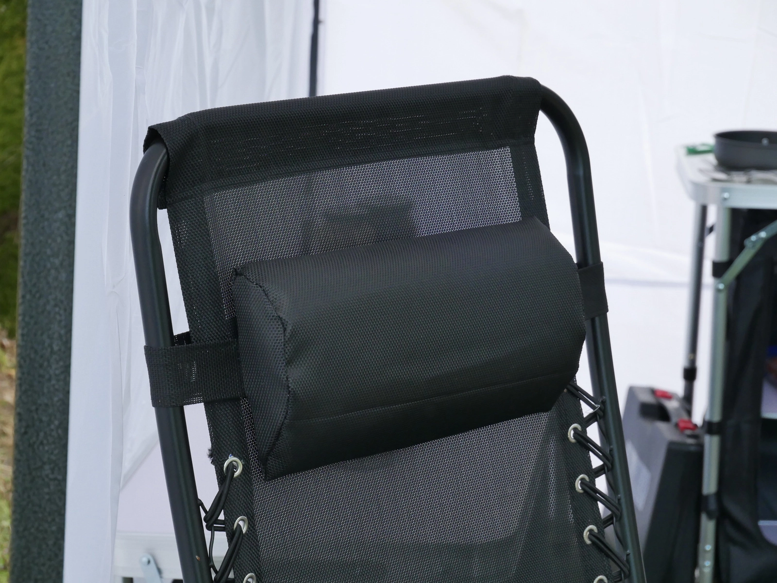 Ajustez l’inclinaison exactement comme vous le souhaitez. Le rembourrage respirant et le coussin coulissant offrent un soutien confortable de la nuque pour de longues périodes de détente.