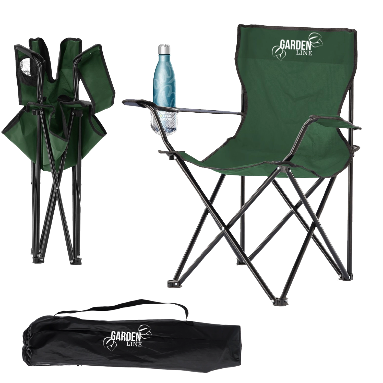 Accoudoirs avec porte-boisson intégré et assise résistante en 600D Oxford pour un confort optimal lors de la pêche, du camping et des moments de détente en plein air.