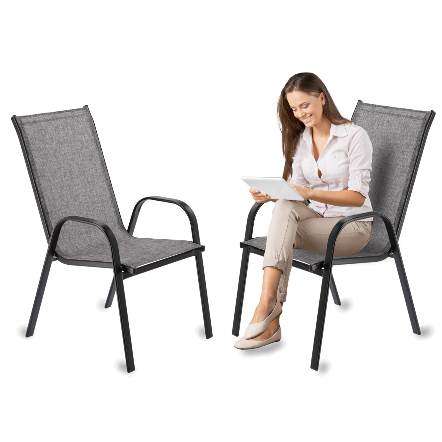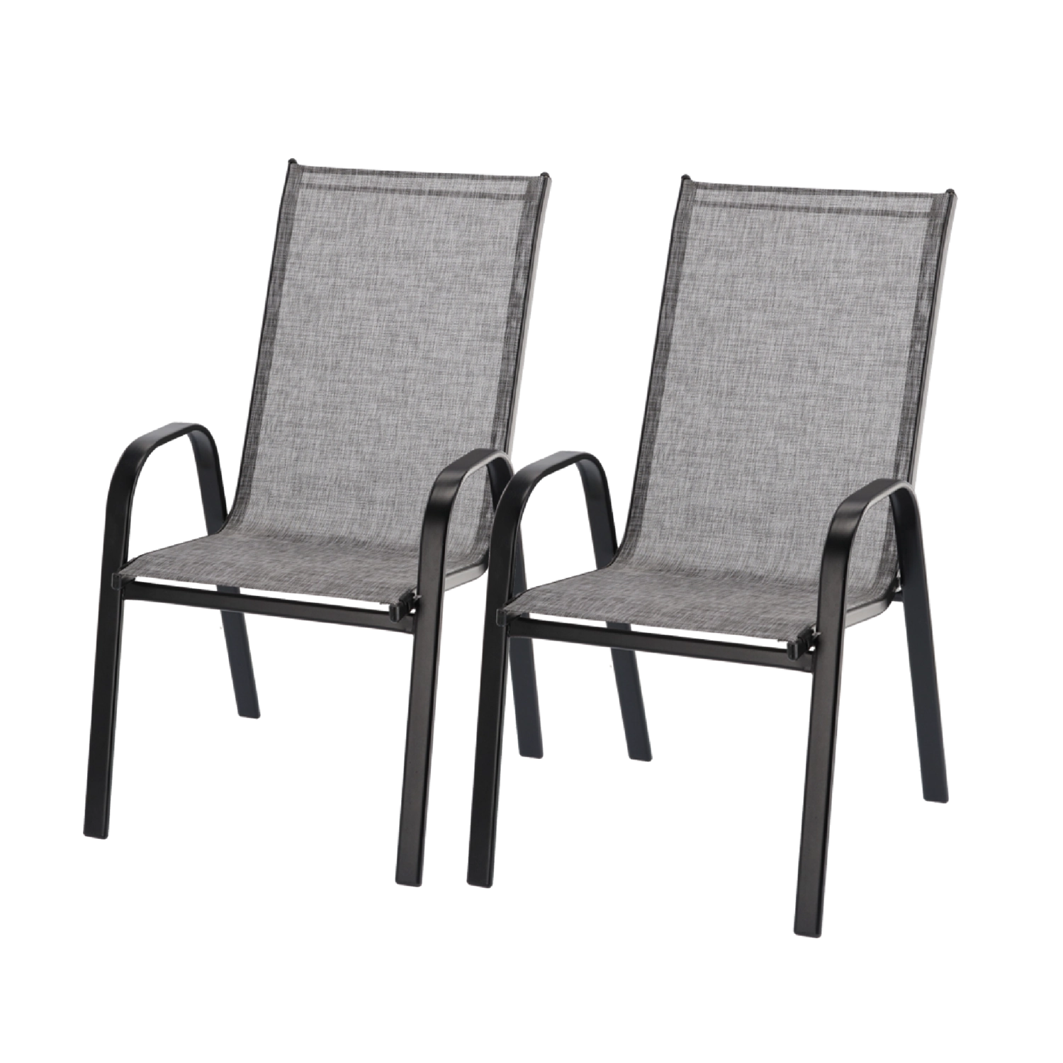 Élégant ensemble de deux fauteuils de jardin GARDENLINE alliant design classique, textilène gris moderne et cadre en acier revêtu par poudre. Ils offrent accoudoirs confortables, sont stables et légers et, grâce à la possibilité de les empiler, se rangent facilement hors saison. Idéal pour la terrasse, le balcon et le jardin.