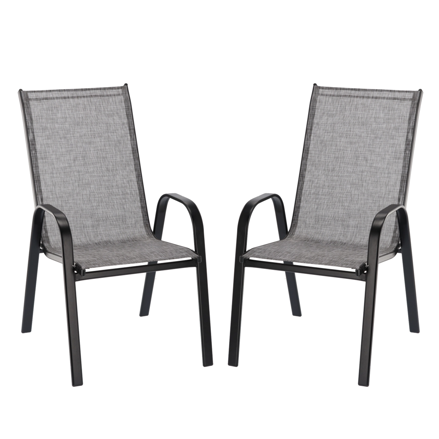 Ensemble de 2 fauteuils de jardin avec textilène gris et cadre en acier noir