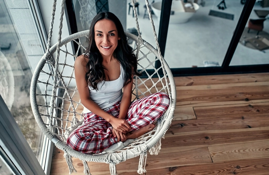 Suspendez‑le au plafond, à une pergola ou à une poutre. Idéal pour se détendre, lire et profiter d’un moment cosy en intérieur comme sous abri à l’extérieur.
