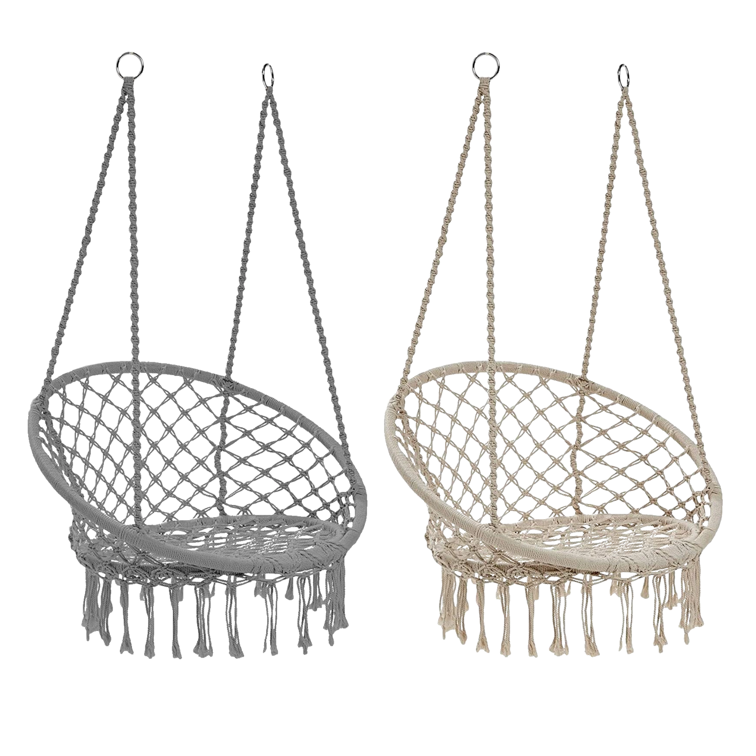 Le fauteuil suspendu nid est idéal pour le balcon, la terrasse et l’intérieur. Il se fixe facilement au plafond ou à une poutre pour créer instantanément un coin douillet dédié à la lecture, au repos ou à la rêverie. Son élégant design beige‑gris à franges s’intègre parfaitement aux styles moderne et bohème.