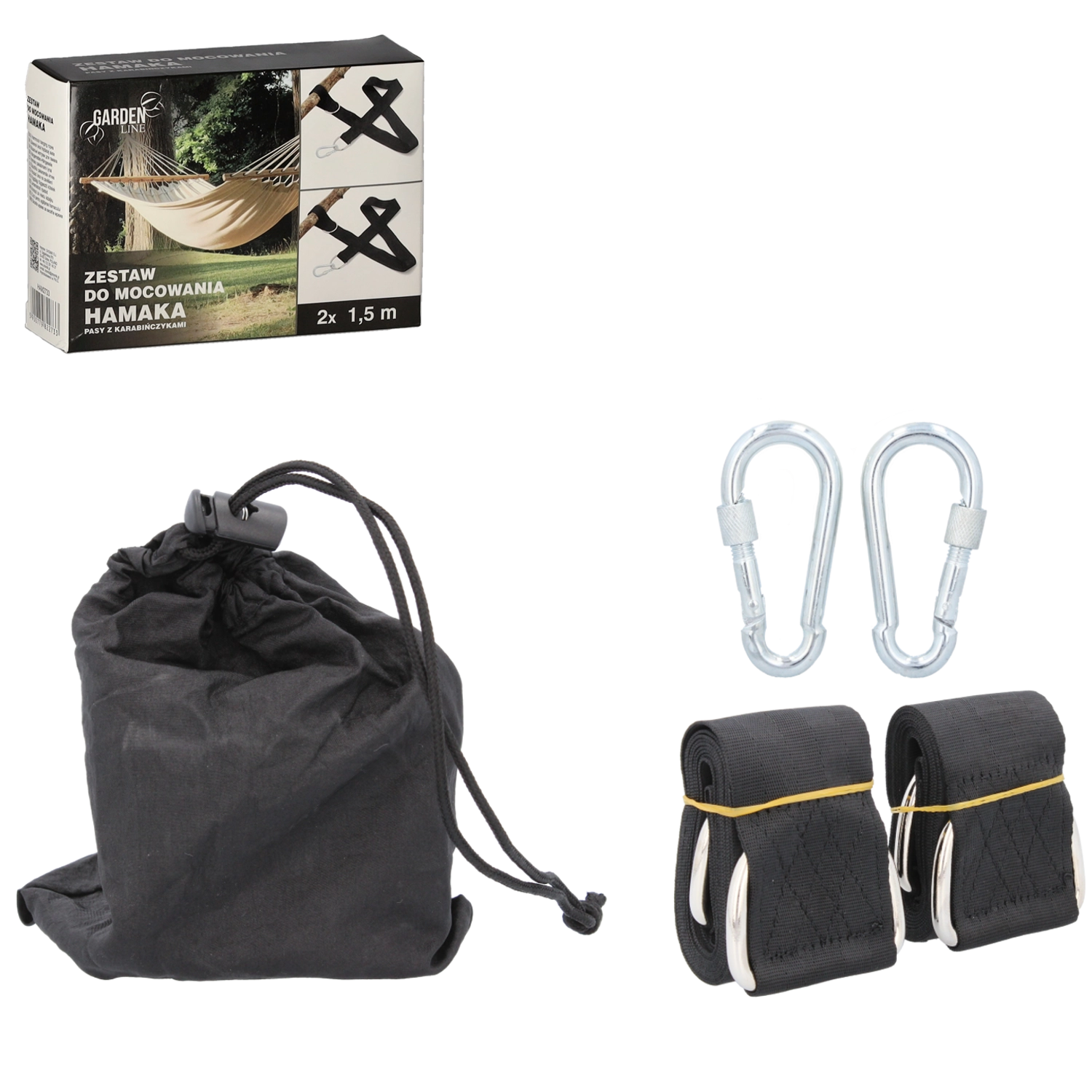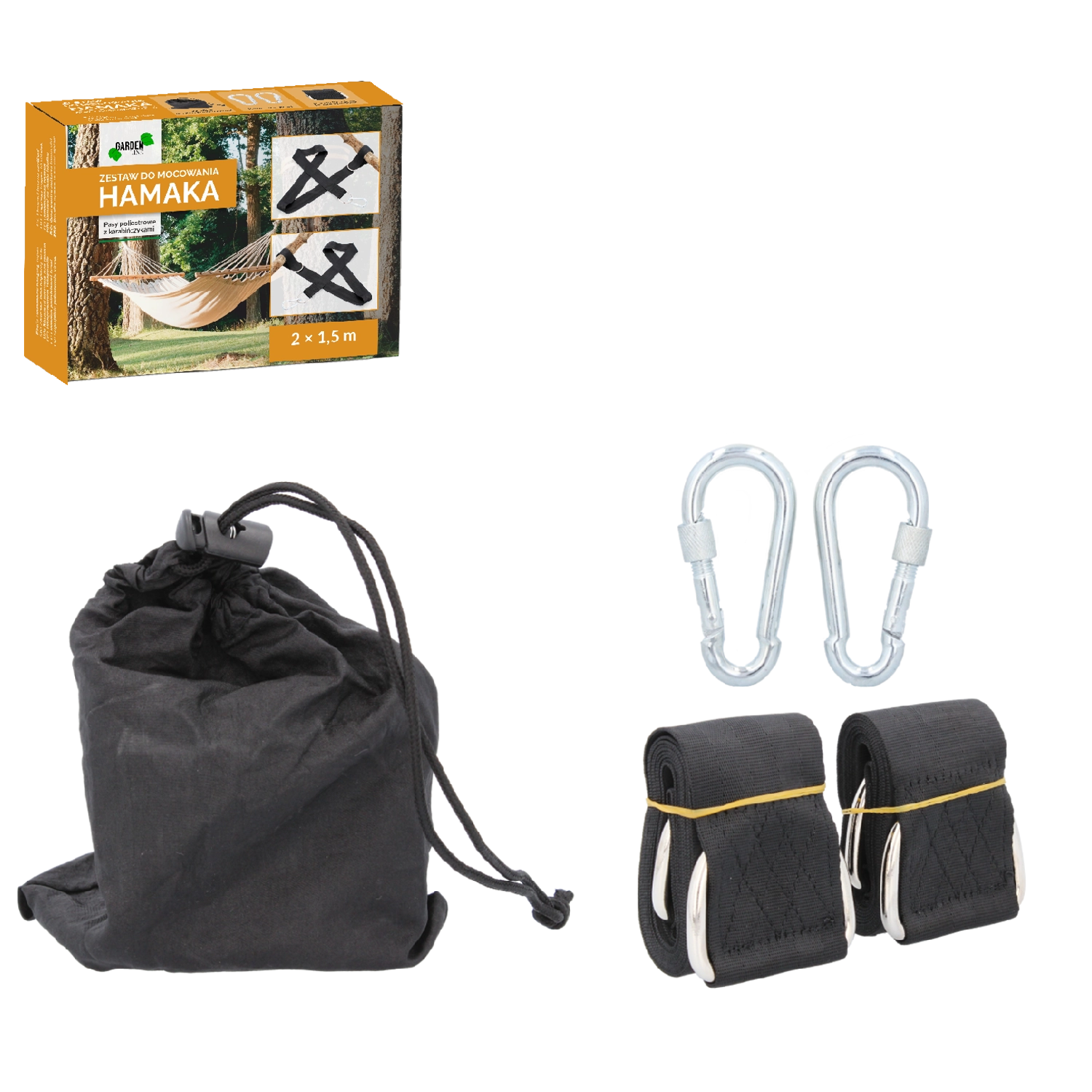 Suspension fiable de votre hamac en quelques minutes. L’ensemble complet avec sangles, mousquetons et crochets assure stabilité et confort au jardin, au chalet, sur le balcon ou en camping. Grâce à la haute capacité de charge et à la conception robuste, vous pouvez vous balancer et vous détendre en toute sérénité.