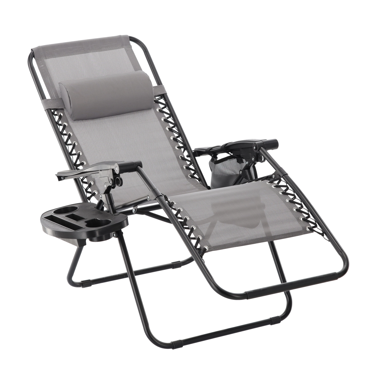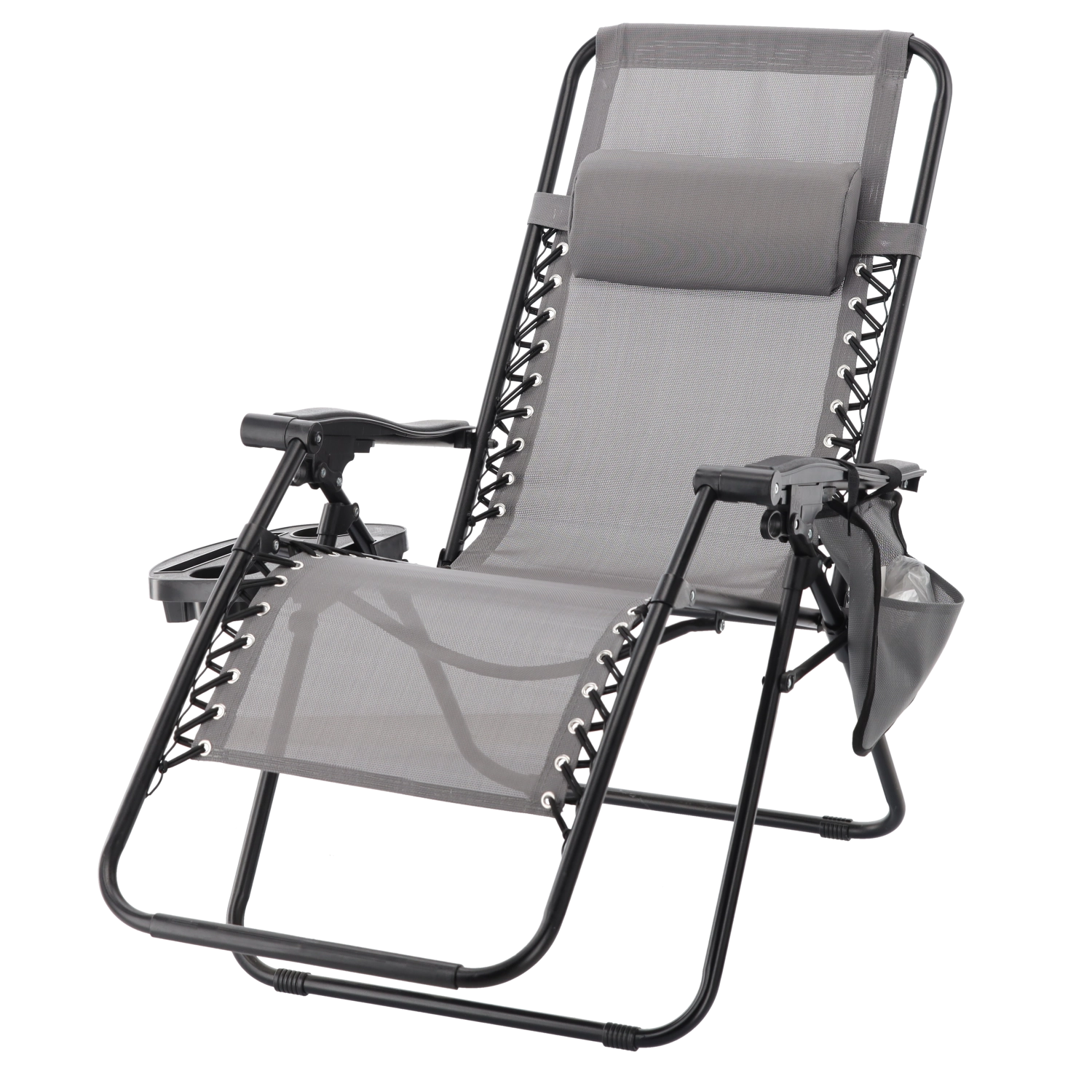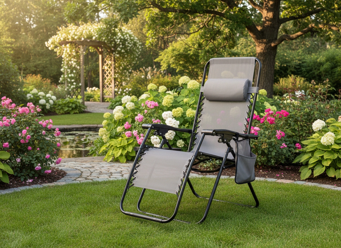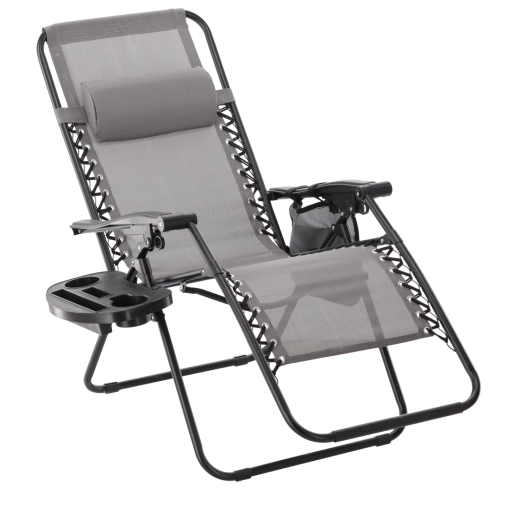 Profitez de moments de détente sur la terrasse ou au jardin avec cette chaise longue grise à quasi apesanteur. Elle offre une position de couchage réglable, un cale-nuque amovible, une pratique tablette latérale avec porte-boissons et une poche pour les essentiels. La maille respirante Textilene assure le confort même par forte chaleur et le cadre métallique robuste apporte stabilité et durabilité pour une utilisation extérieure quotidienne.