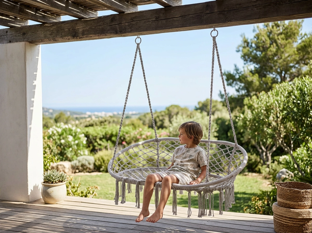 Le large dossier 130 × 73 cm et une capacité de charge jusqu’à 300 kg apportent une sécurité totale même en s’asseyant à deux. Grâce à son design intemporel, le fauteuil s’harmonise facilement avec un style extérieur ou intérieur moderne comme bohème.