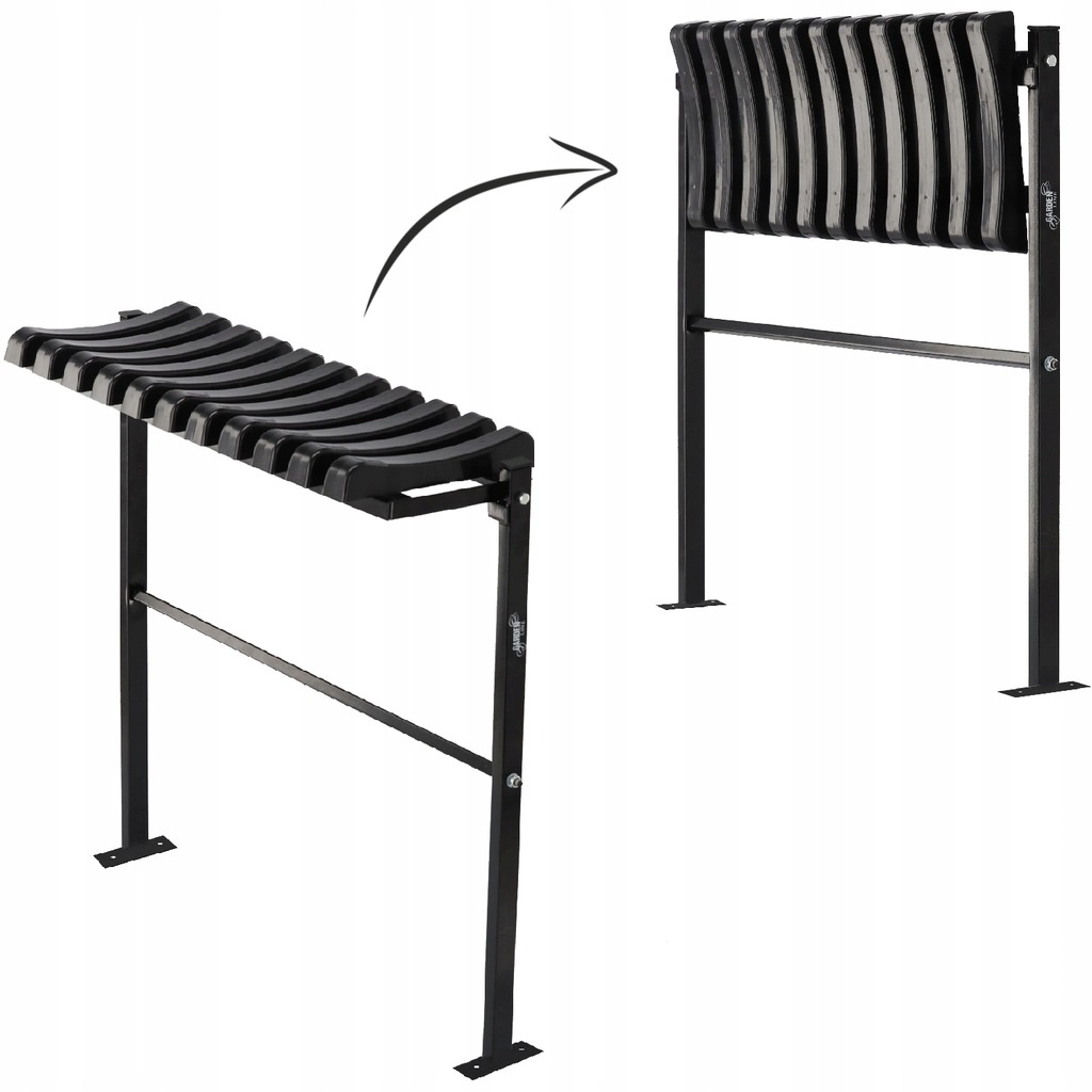 L’assise se rabat d’un seul geste. Elle empêche le dépôt de feuilles, de neige et de poussière et le banc est toujours prêt à l’emploi.