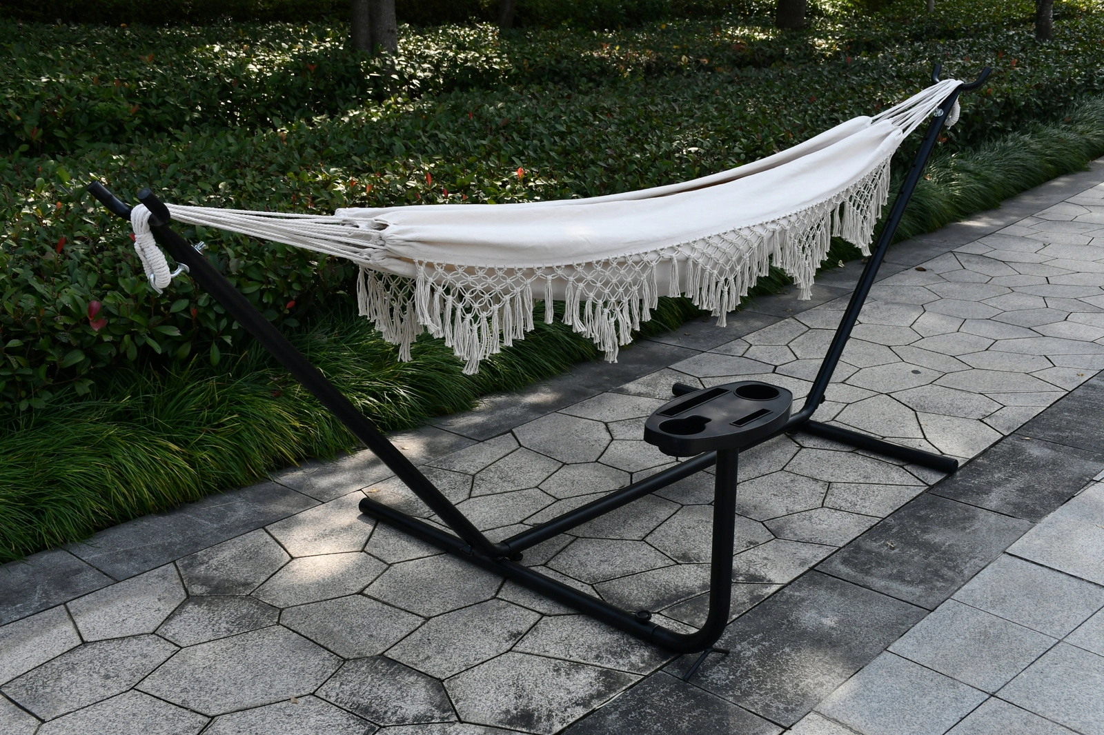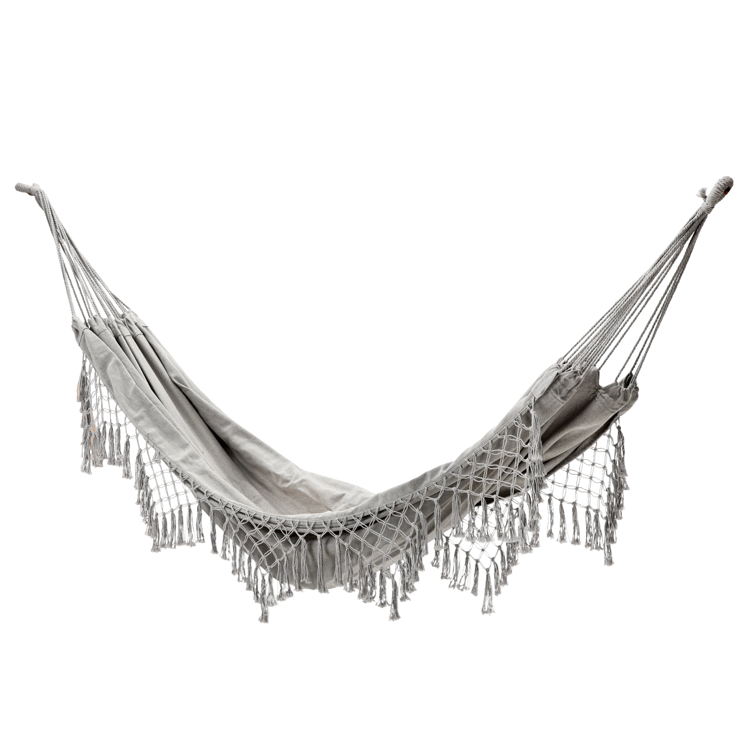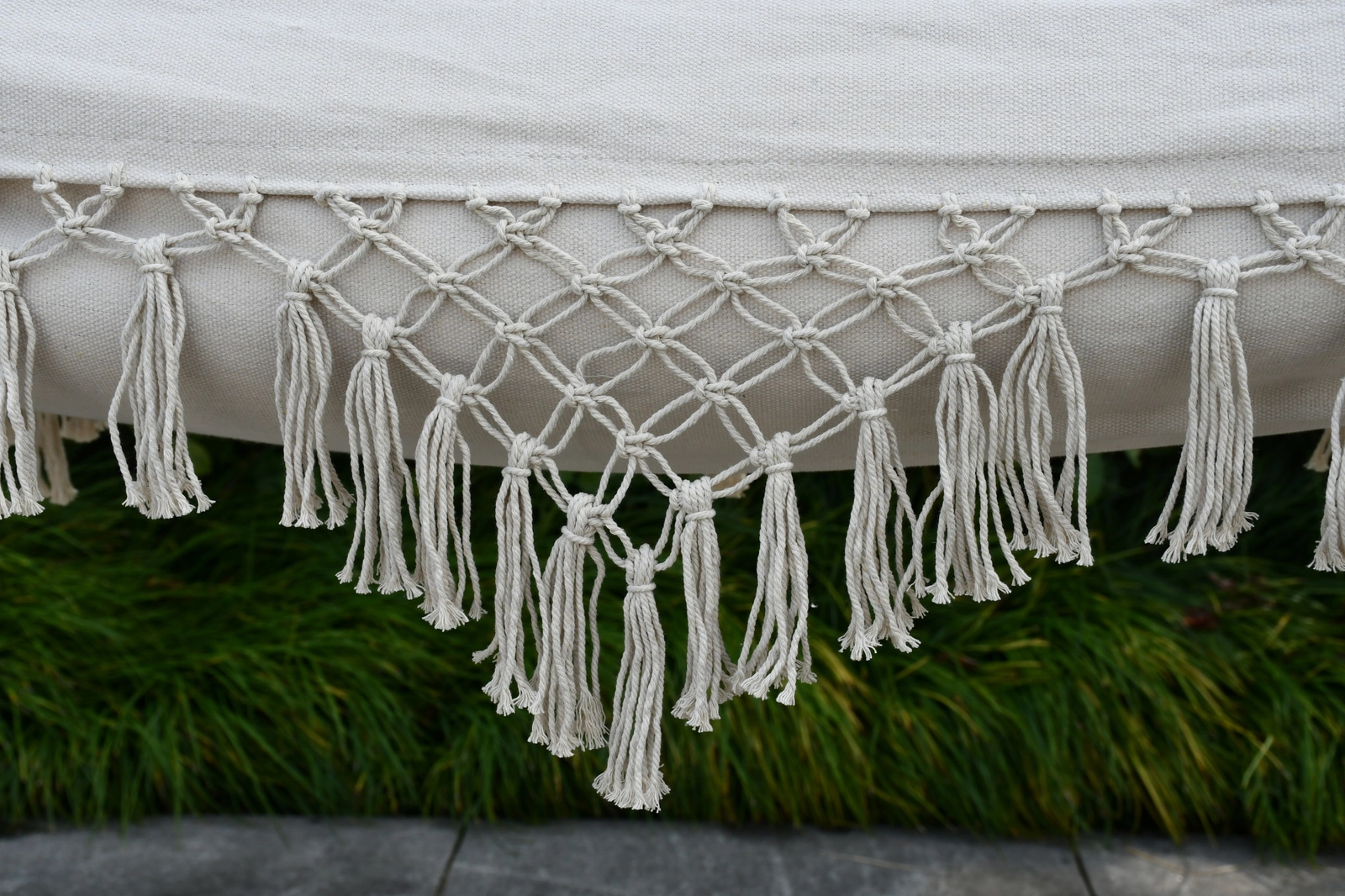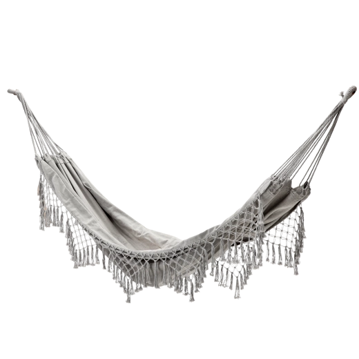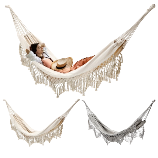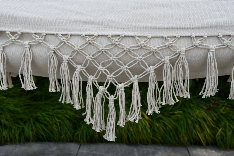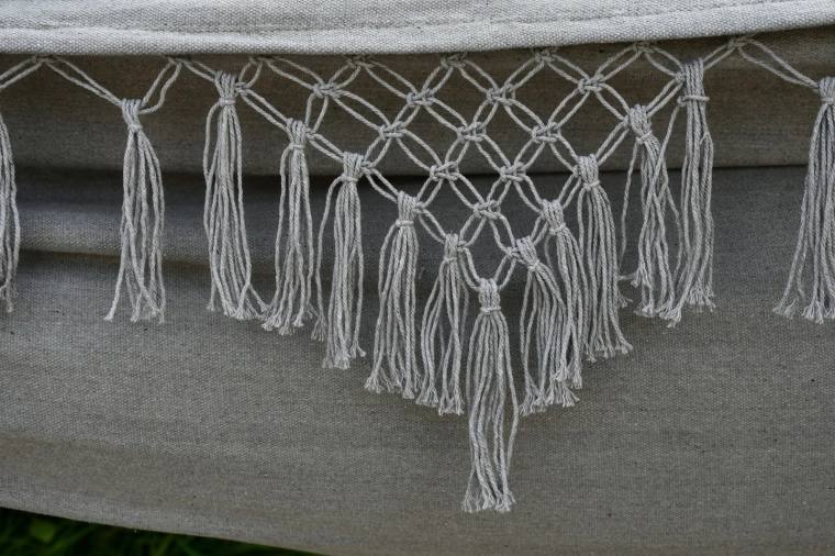 Un élégant bord en macramé donne au hamac un design unique qui s’harmonise parfaitement avec les extérieurs naturels comme modernes.