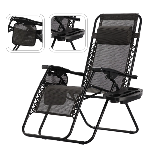 Profitez du confort et du style au jardin, sur la terrasse ou le balcon. Cette chaise longue pliable offre un appuie-tête et un repose‑pieds réglables, une tablette d’appoint amovible et une poche latérale pratique pour téléphone ou magazine. Sa structure robuste et son tissu respirant Textilene garantissent stabilité, résistance et confort à chaque moment de détente.