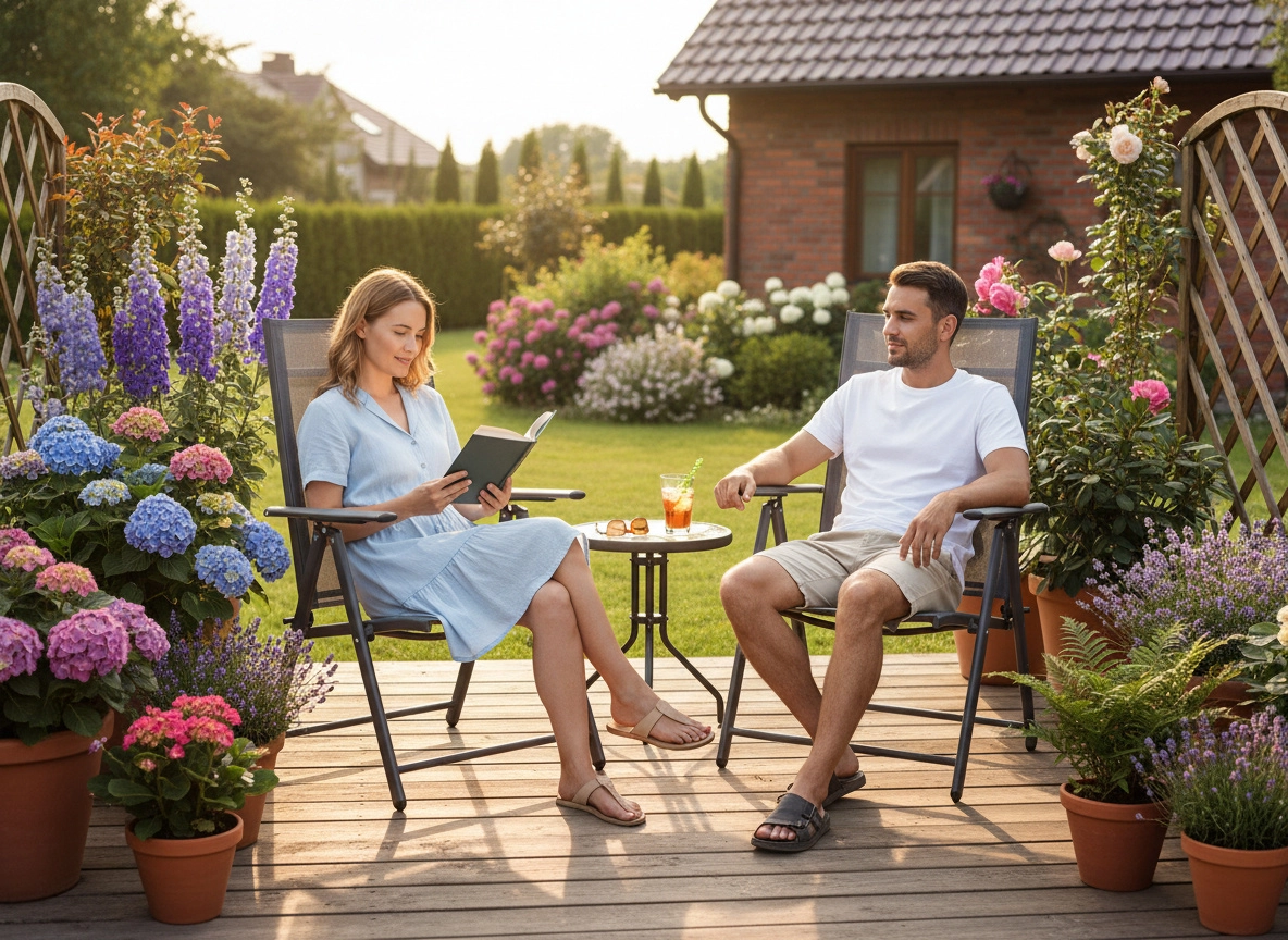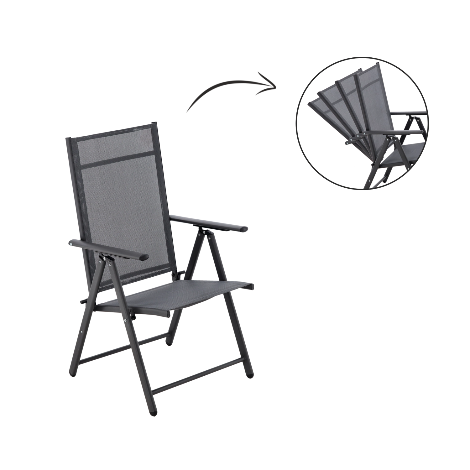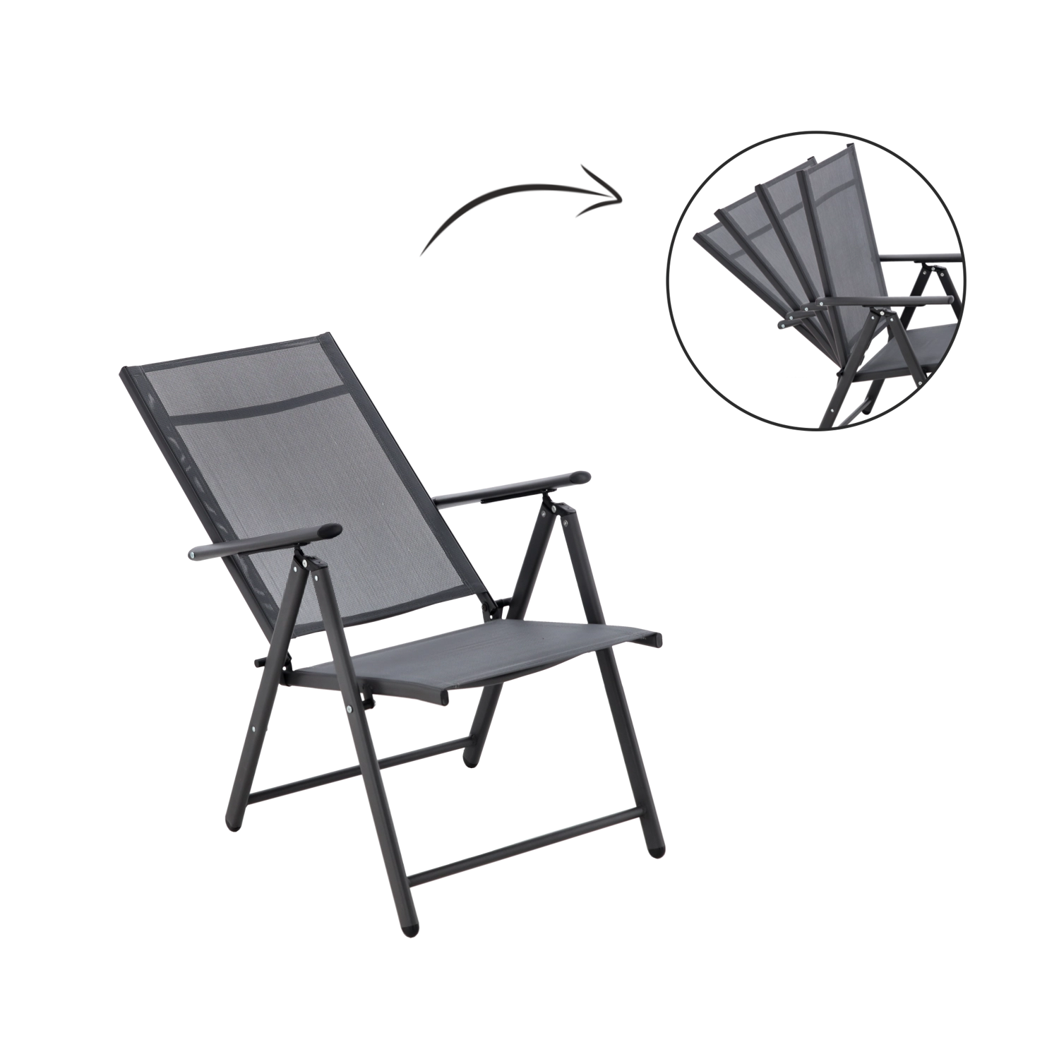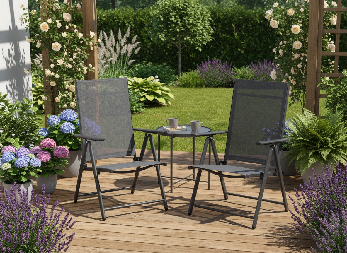 Cette chaise de jardin pliable combine un cadre en acier robuste avec un textile respirant qui sèche vite et reste agréable même par forte chaleur. Grâce aux 7 positions du dossier, vous ajustez facilement la posture idéale – du repas à la détente à l’ombre.