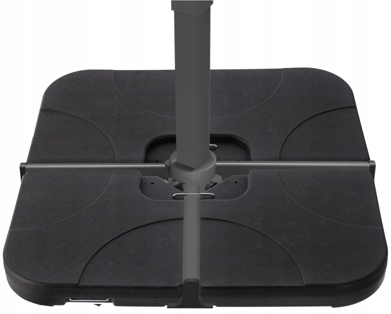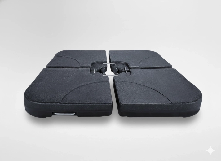 Cette base de parasol en 4 parties est conçue pour offrir une stabilité maximale et une utilisation aisée. Chaque segment peut être rempli d’eau séparément, créant ainsi un lest robuste pour un ancrage sécurisé des parasols déportés ou centraux. Grâce à ses dimensions compactes et à ses poignées intégrées, la manipulation est simple et confortable.