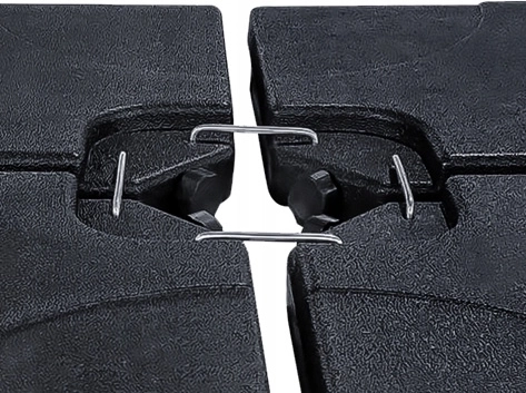 Chacun des quatre éléments se remplit d’eau, ce qui augmente considérablement le poids total de la base. Des bouchons étanches maintiennent le remplissage en toute sécurité à l’intérieur et le parasol fermement en place.