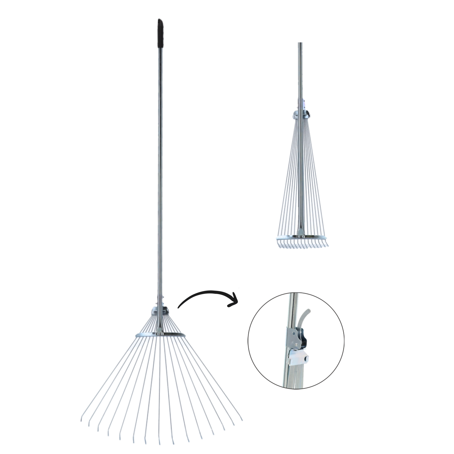 Râteau de jardin pratique et léger avec réglage de la largeur de travail et manche de longueur confortable pour un travail sans effort. Grâce aux lames métalliques flexibles, vous ramassez facilement feuilles, herbe et petits débris sur pelouses et massifs. Poids réduit et réglage rapide en font l’outil idéal pour le nettoyage saisonnier du jardin.