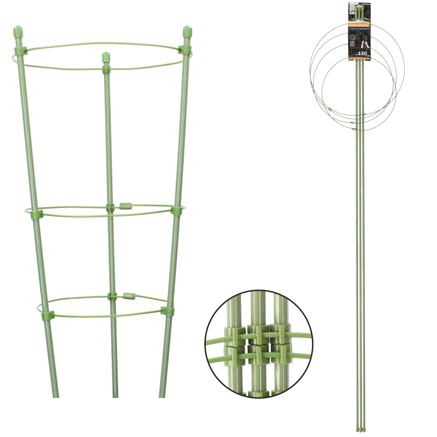 Tuteur circulaire pratique pour plantes de jardin et d’intérieur, hauteur 150 cm, en acier résistant revêtu de PE. Assure un maintien stable, empêche le versage des plantes et favorise une croissance harmonieuse. Grâce à sa couleur verte, il est presque invisible dans la végétation et convient parfaitement aux myrtilles, hortensias ainsi qu’à d’autres arbustes et vivaces.