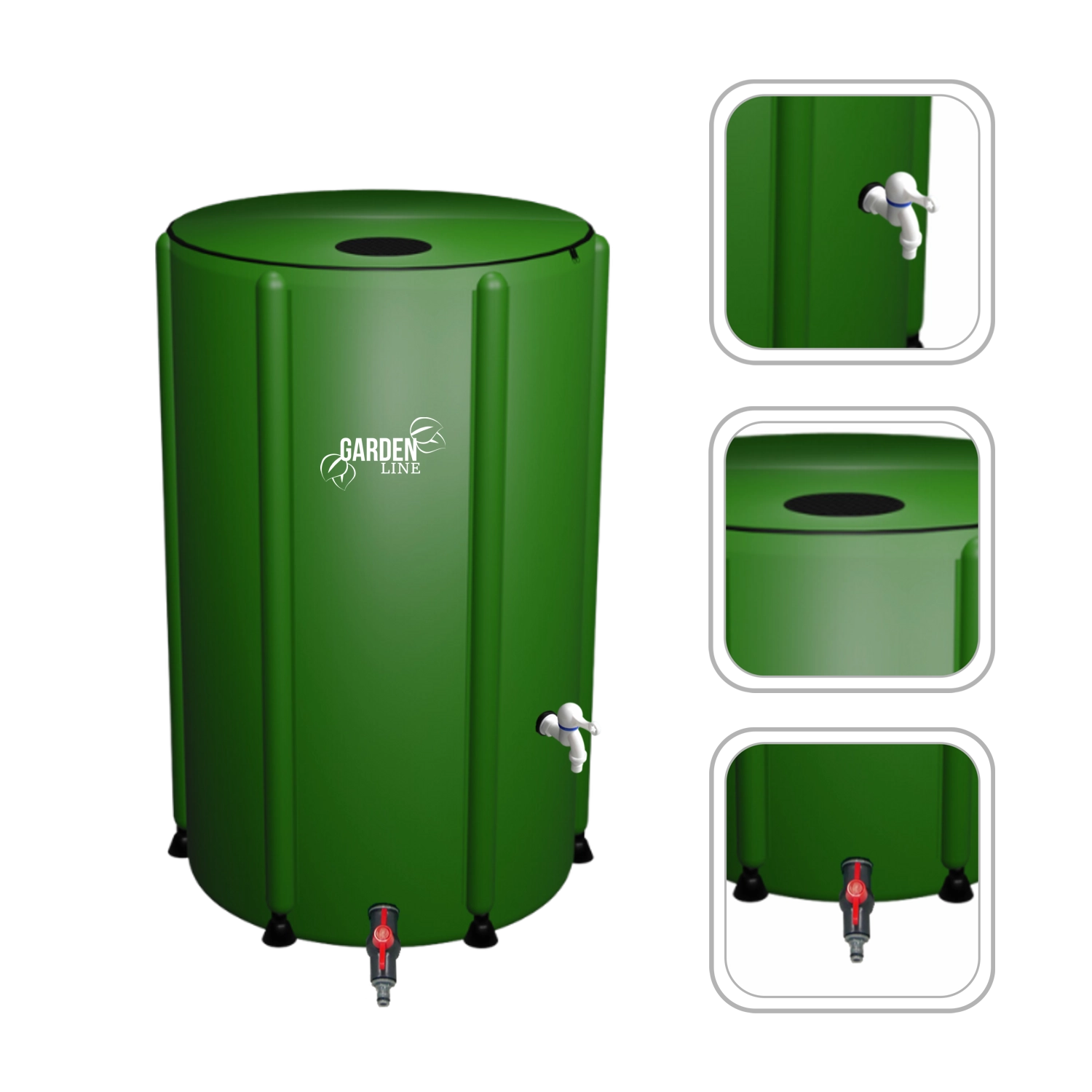 Compact et robuste, le tonneau pliable pour eau de pluie 250 l est idéal pour les petits jardins, terrasses et chalets. Le tissu PVC (1000D) résiste aux intempéries et à la corrosion, le couvercle zippé et les filtres en maille aux entrées/sorties protègent l’eau des impuretés. Grâce à sa structure pliable, il se transporte facilement et ne prend pas de place hors saison.