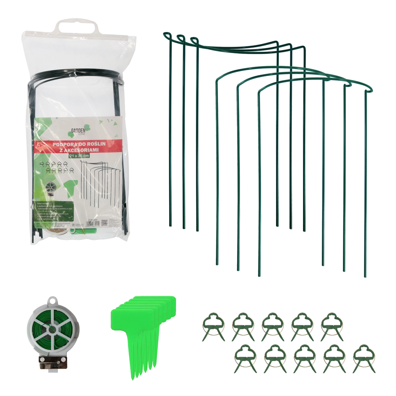 Support de jardin pratique pour fleurs et plantes ornementales en acier robuste avec revêtement plastique. Grâce à sa couleur verte, il est discret, tout en stabilisant les tiges et en favorisant une croissance harmonieuse. Le paquet comprend un kit complet d’accessoires pour fixer et étiqueter facilement les plantes.