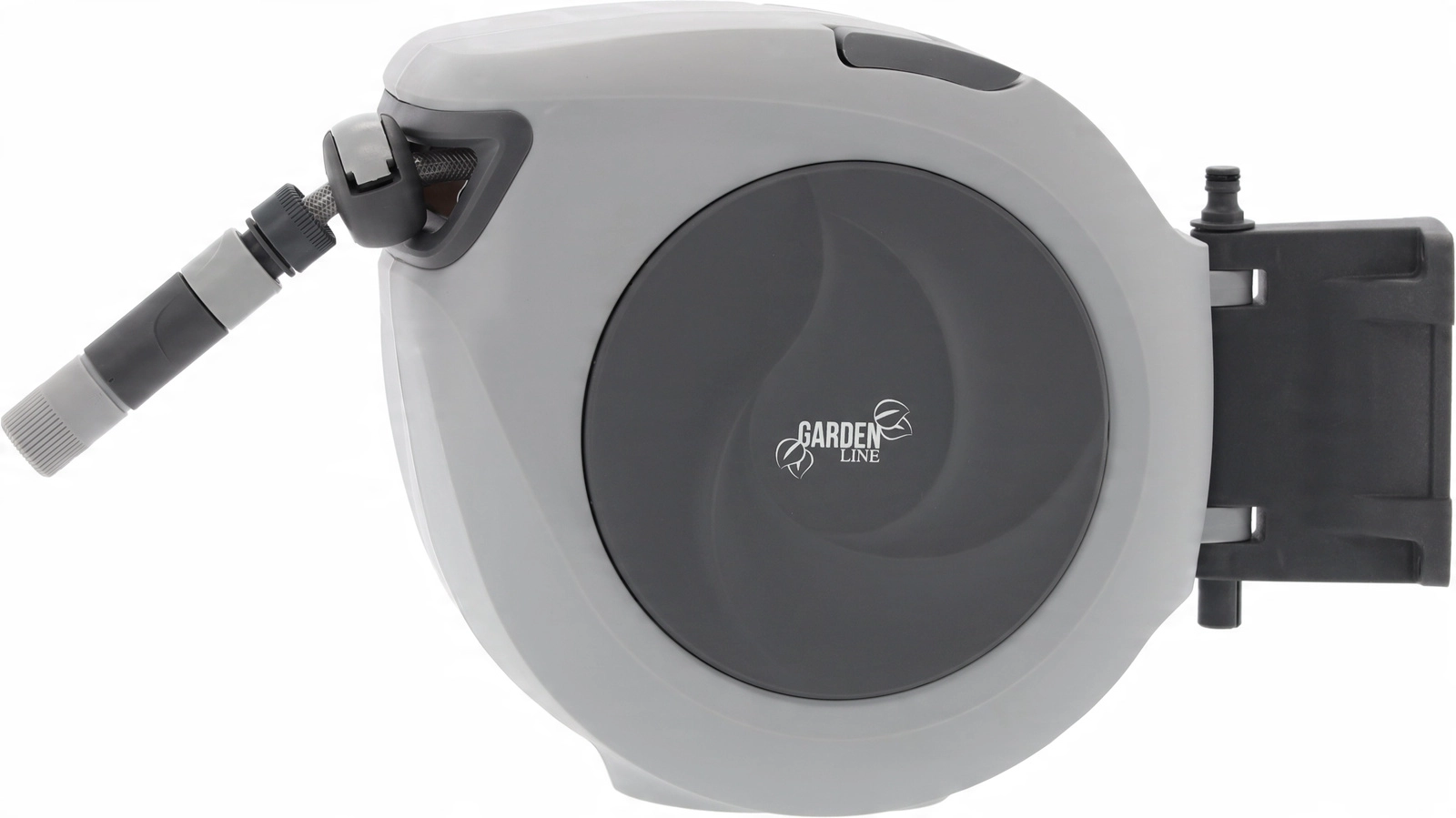 L’enrouleur automatique de tuyau est un excellent choix pour un arrosage pratique et sûr. Le boîtier fermé en plastique résistant protège le tuyau, le mécanisme à ressort assure un enroulement fluide et le verrouillage automatique permet d’immobiliser le tuyau à la longueur souhaitée. Le support pivotant avec une amplitude de 180° facilite le travail dans tout le jardin sans vriller le tuyau.