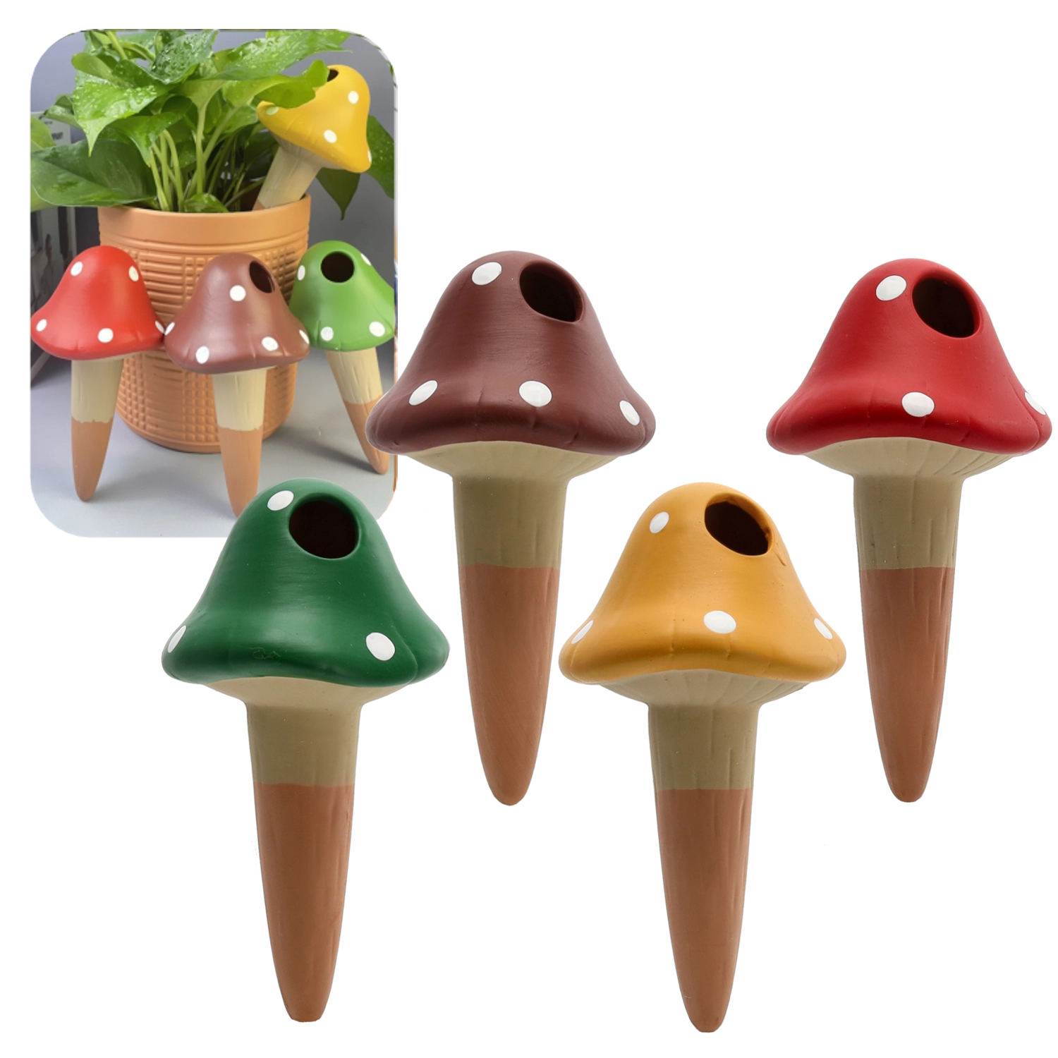 Pointe d’arrosage auto-irrigante en céramique Amanite 8,2 × 16,2 cm, assortiment de couleurs