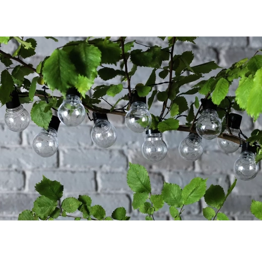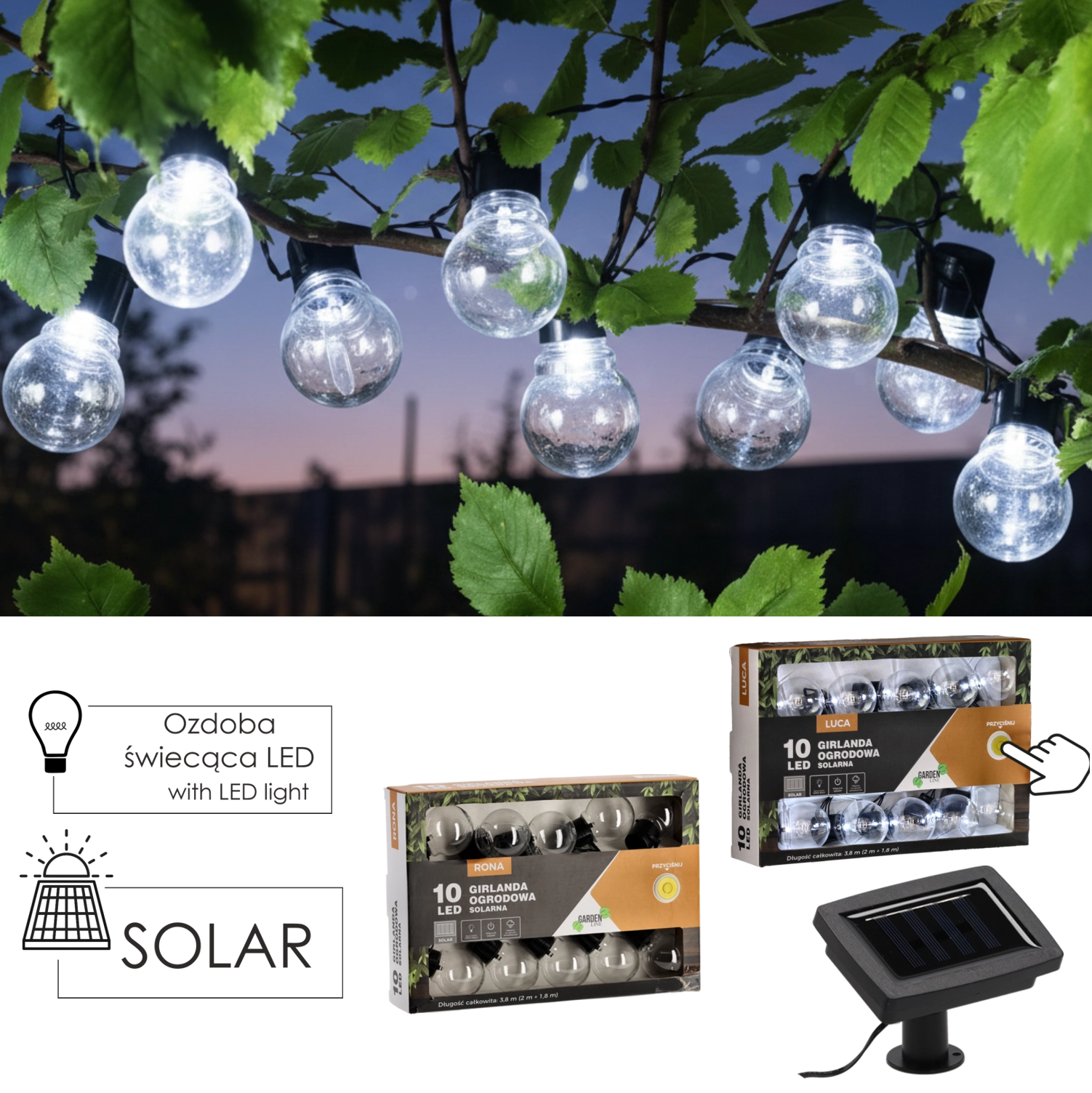 Créez une atmosphère magique sur votre balcon ou terrasse avec la guirlande solaire LUCA 10 LED. Grâce à son alimentation solaire, installez-la où vous voulez sans prise. La guirlande offre une lumière fixe ou clignotante en blanc froid, est étanche IP44 et, une fois complètement chargée, éclaire jusqu’à 6–7 heures.