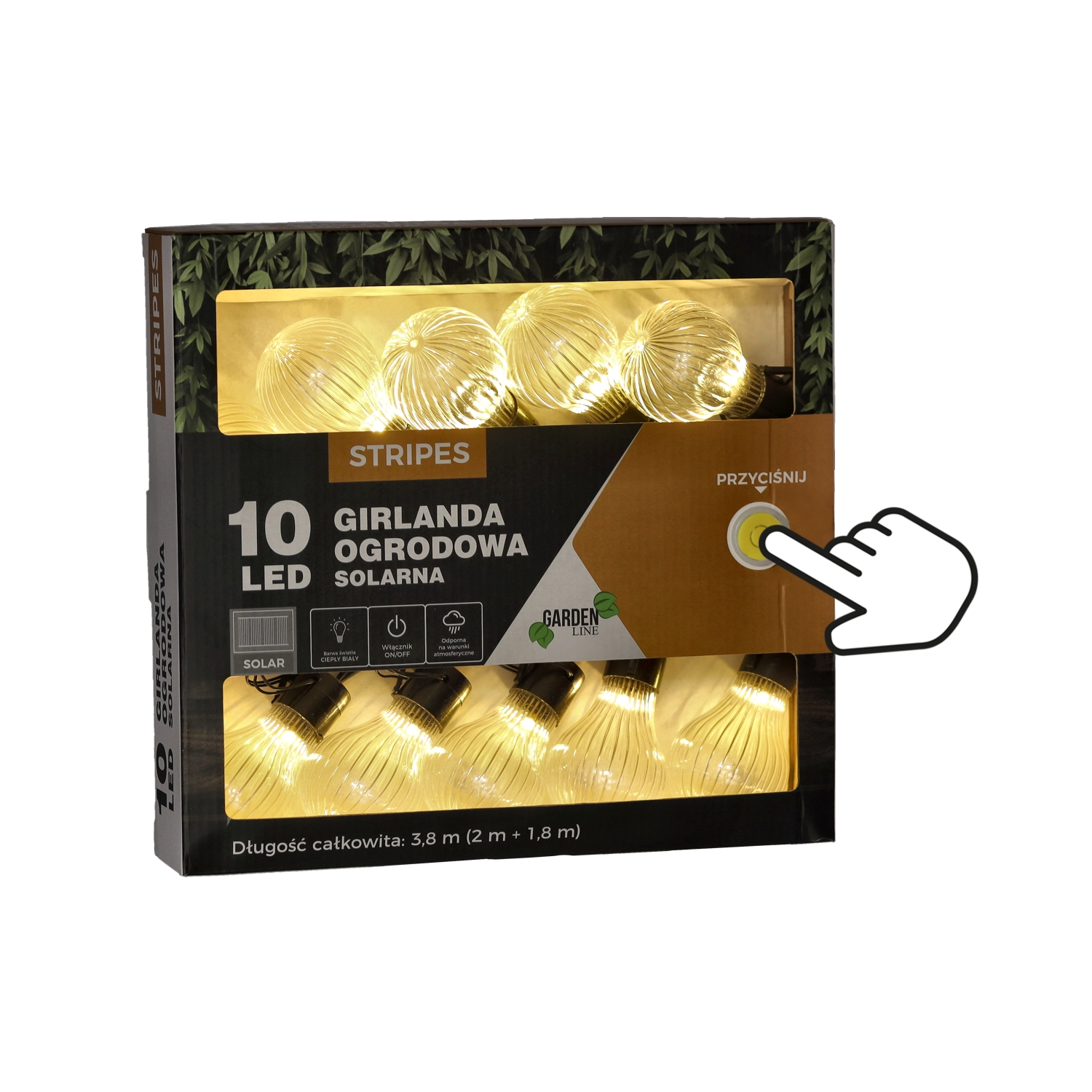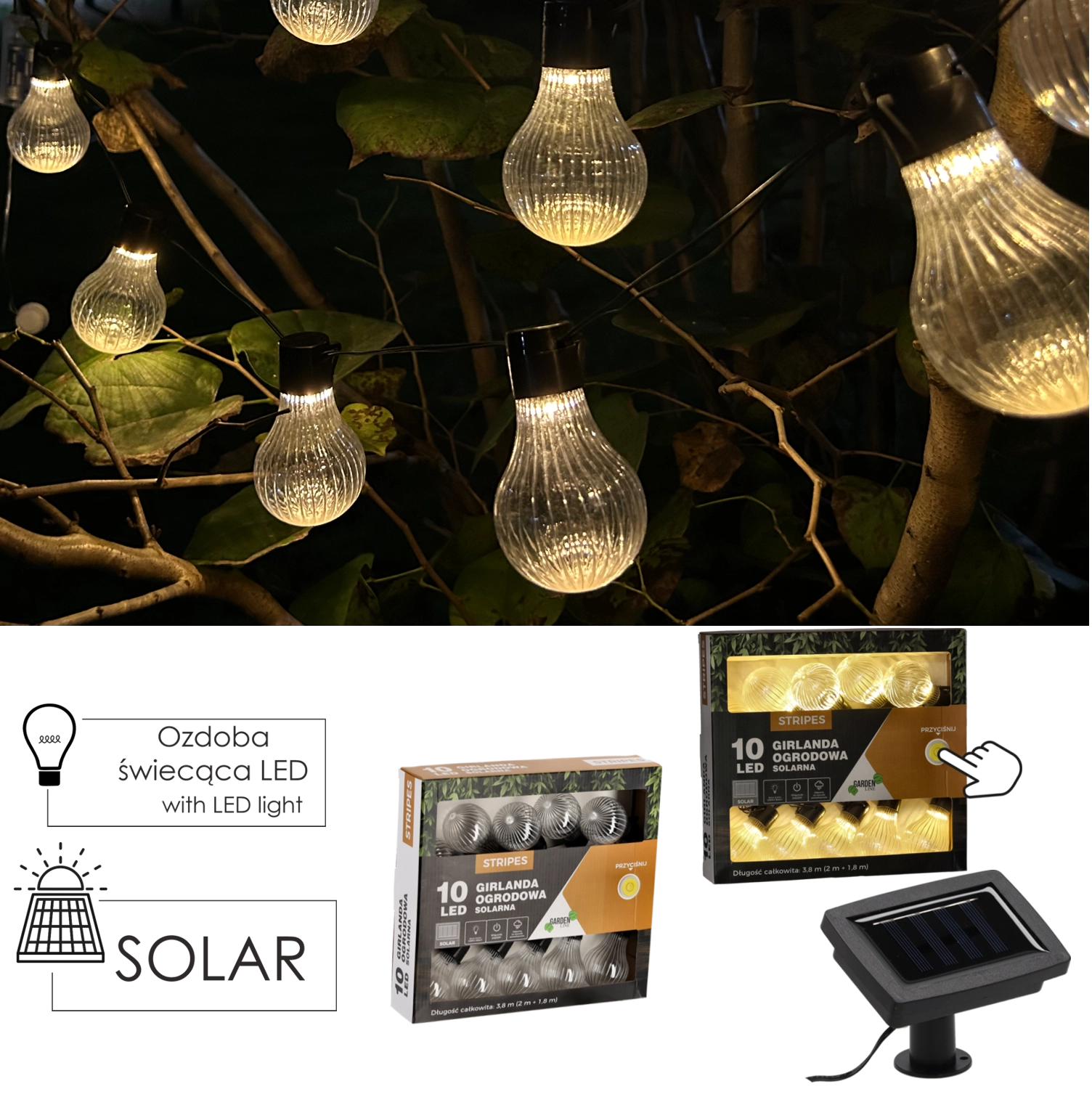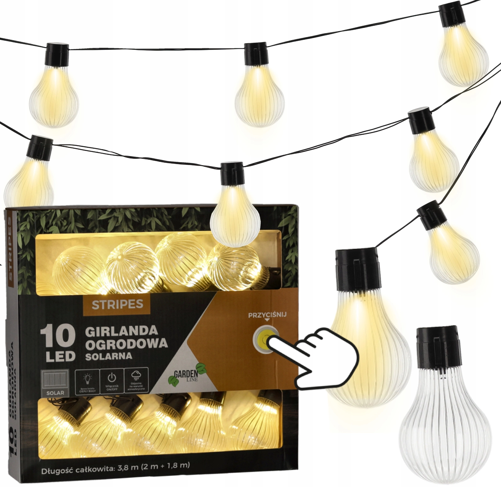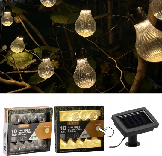 Guirlande solaire de jardin STRIPES 10 LED blanc chaud 3,8 m