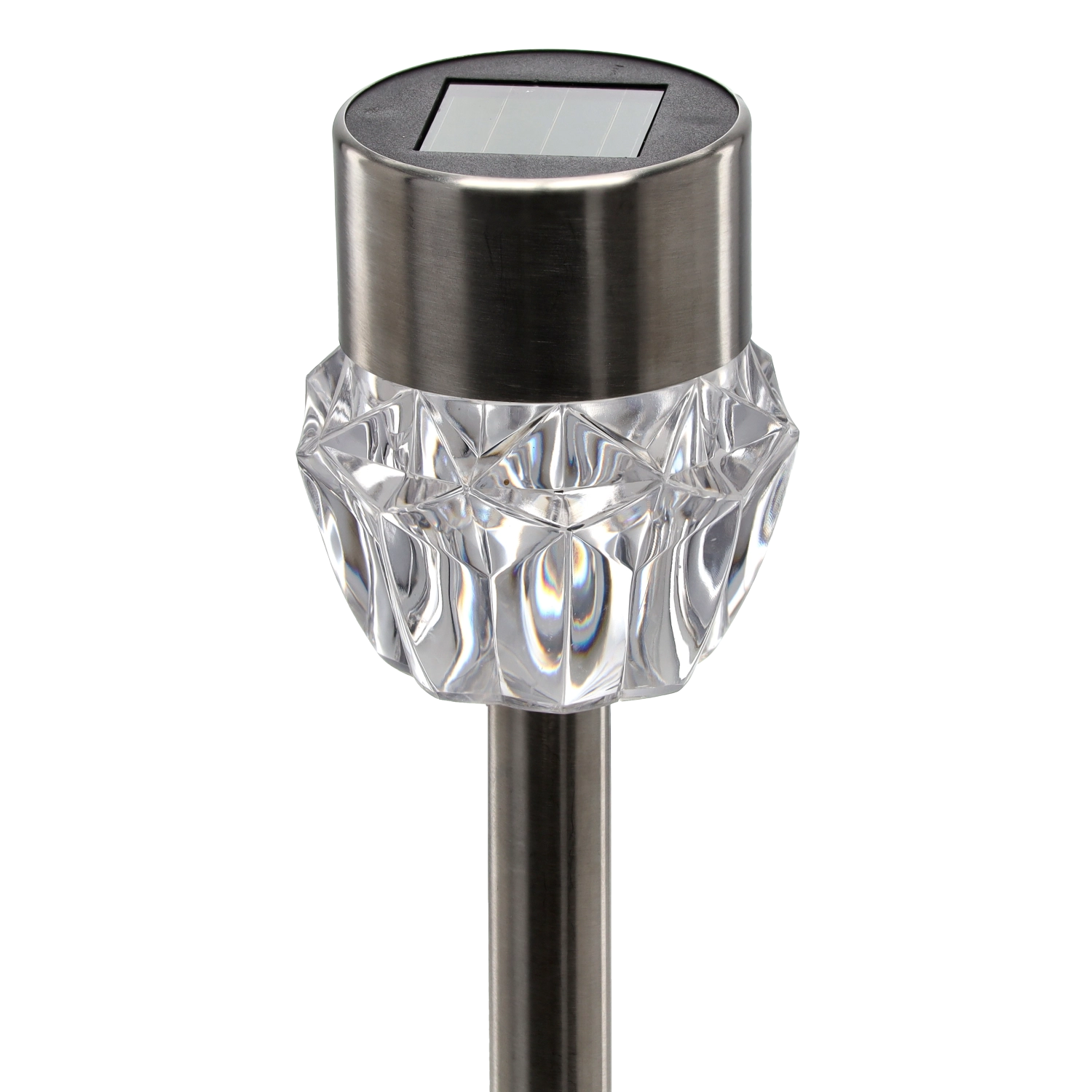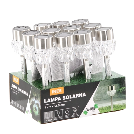 Élégante lampe de jardin solaire INES avec corps argenté et lentille décorative illumine allées, terrasses et massifs. Grâce à l’alimentation solaire, aucun câblage ni frais supplémentaires : elle s’allume automatiquement à la tombée de la nuit et offre une LED blanc froid. La protection IP44 assure un fonctionnement fiable par tous les temps.