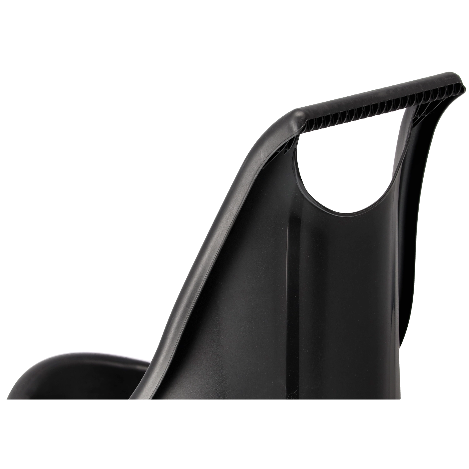 La poignée haute, ergonomique, assure une prise en main sûre et facilite le basculement lors du vidage.