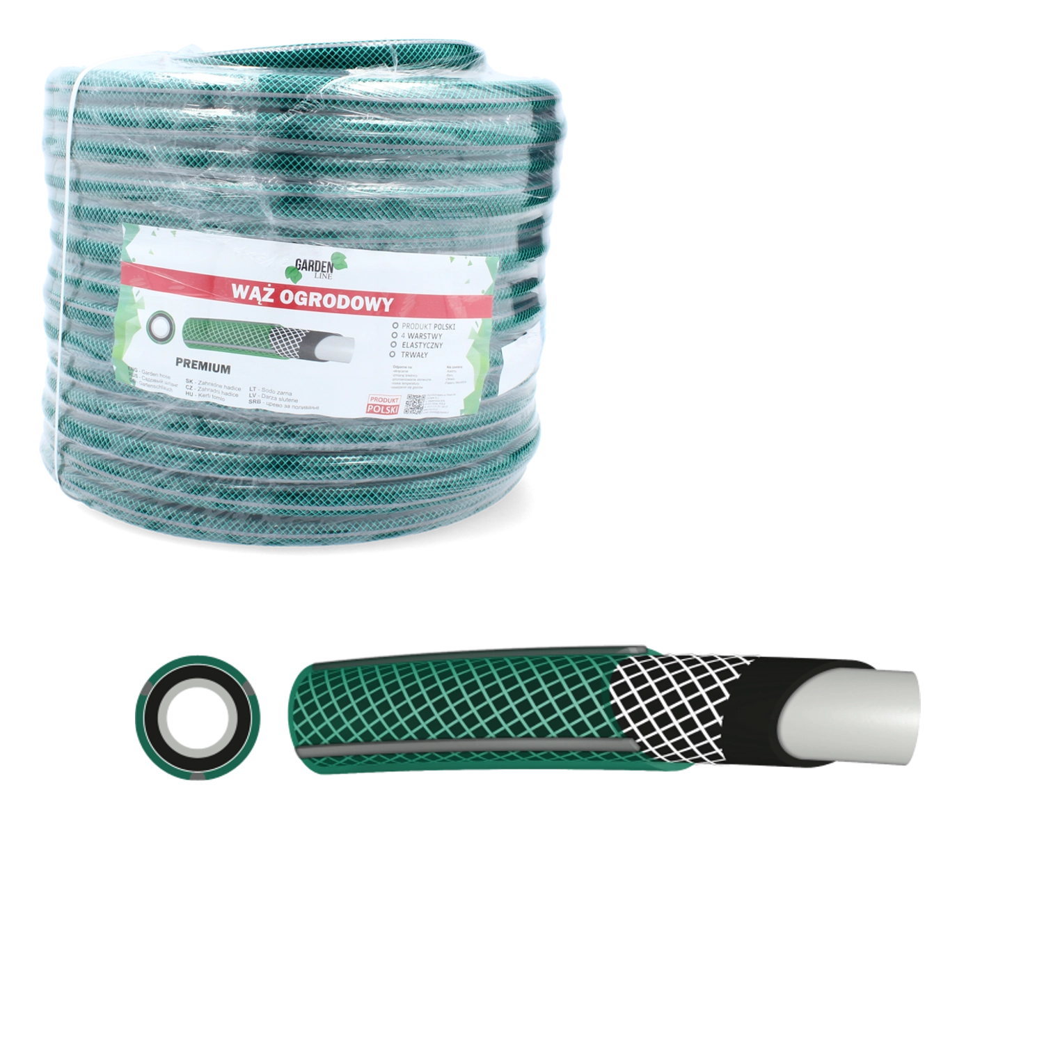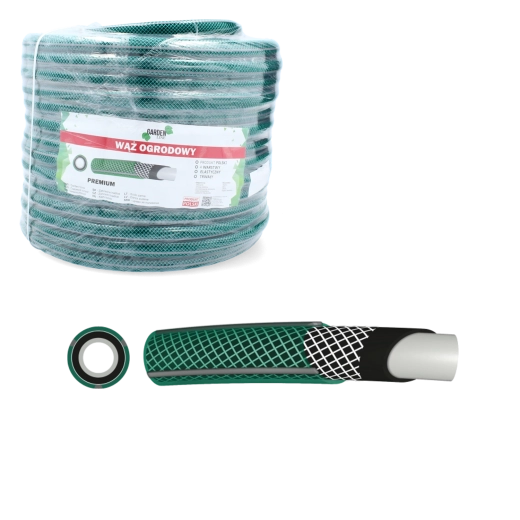 Tuyau de jardin Premium résistant et flexible, longueur 30 m et diamètre 1/2", pour un arrosage fiable toute l’année. Grâce à sa construction 4 couches avec renfort textile, il offre une haute résistance aux dommages, une pression de service de 8 bar et un fonctionnement de -10 à +60 °C. Fabriqué en Pologne.