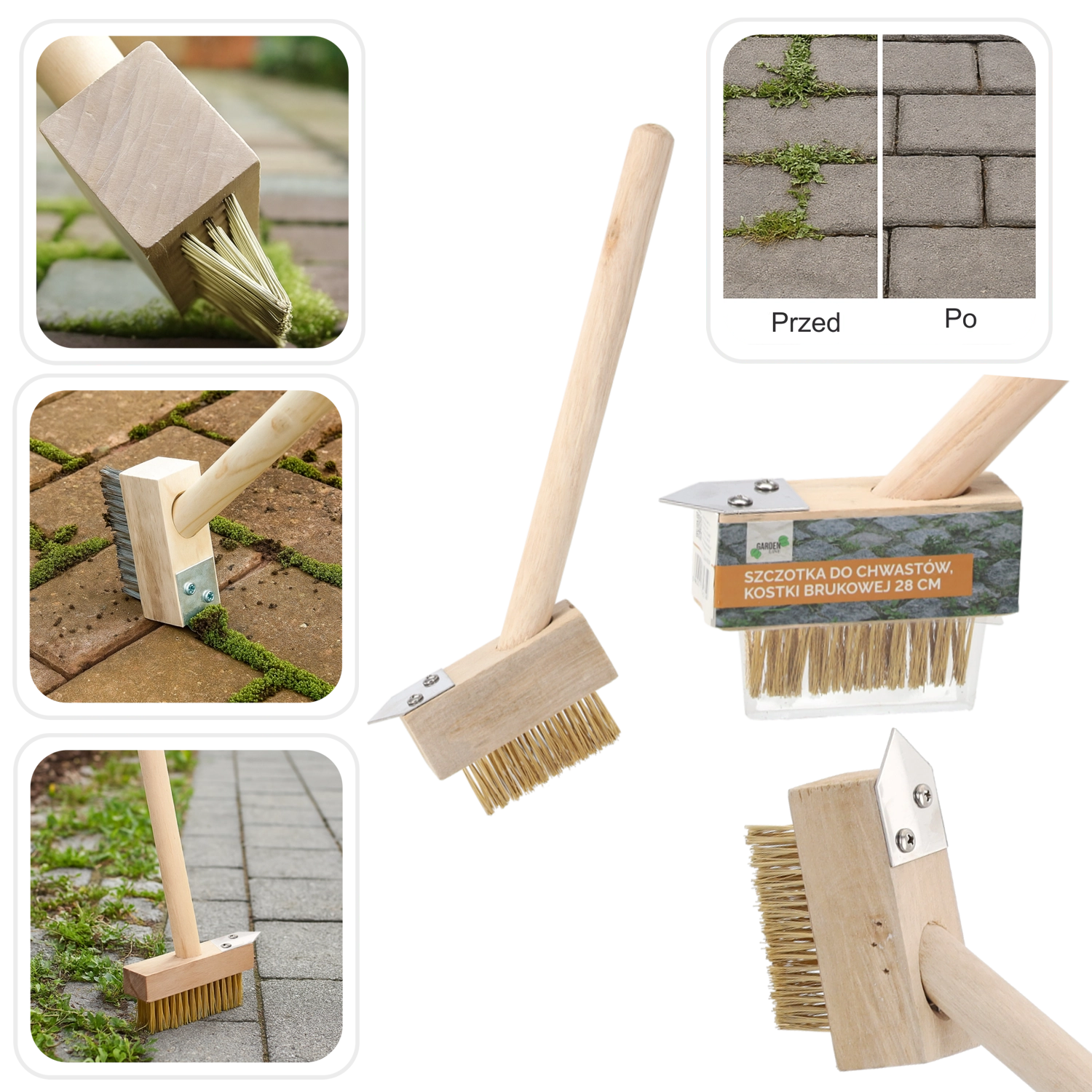 Brosse compacte et résistante pour mauvaises herbes et joints de dallage de 28 cm, nettoie efficacement les interstices entre pavés et dalles de trottoir. Elle combine des poils métalliques rigides avec un bord racloir en acier pour éliminer la mousse, l’herbe et les saletés incrustées. Grâce à sa poignée ergonomique en bois, elle est agréable à utiliser et facilite l’entretien régulier des terrasses, trottoirs et allées.