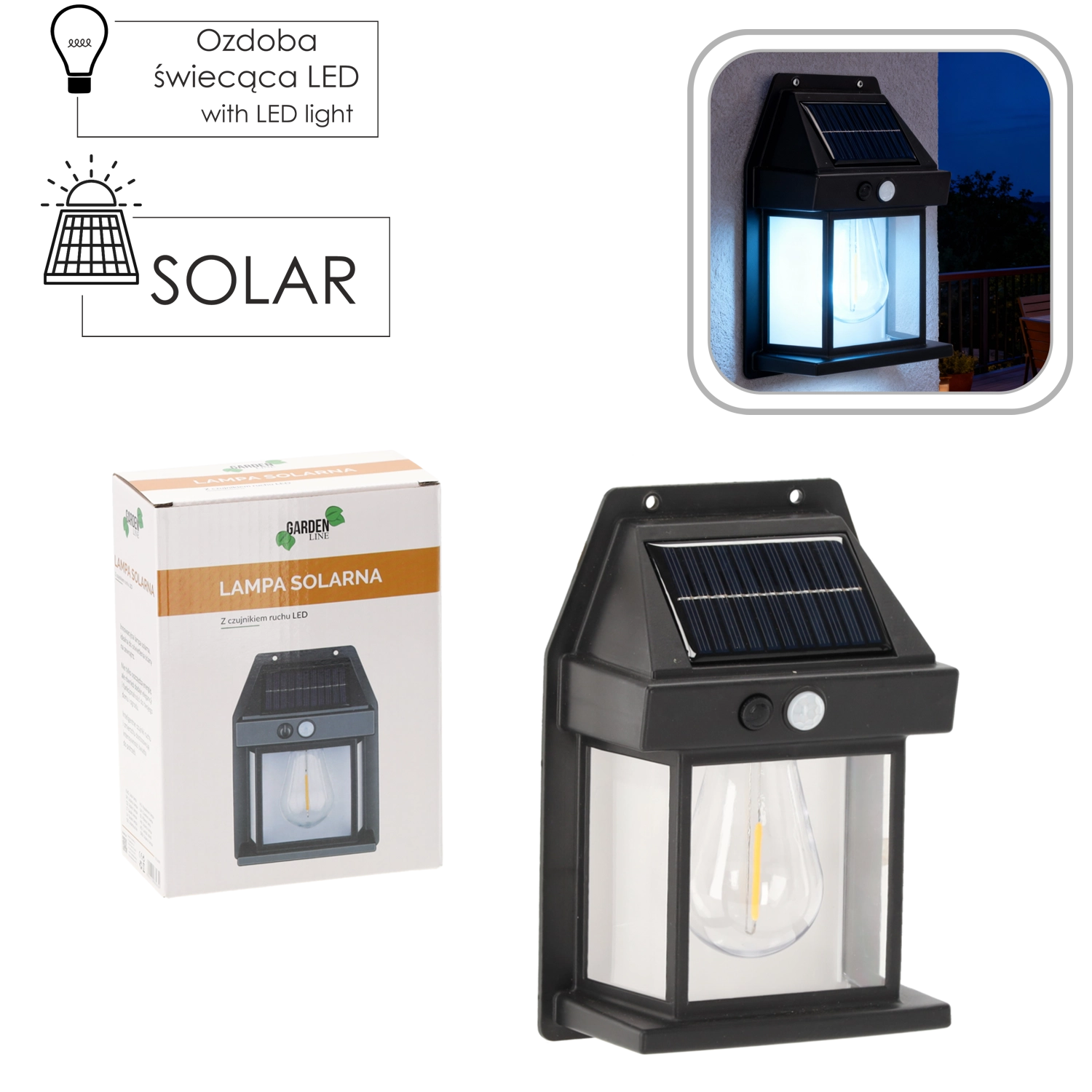 Élégante applique murale solaire pour l’extérieur, combinant économie d’énergie, allumage automatique et éclairage LED puissant. Grâce au capteur de mouvement et au capteur crépusculaire intégrés, la lumière s’adapte à vos besoins, améliore la sécurité à l’entrée, sur la terrasse ou le long des allées, et ne nécessite aucun câblage.