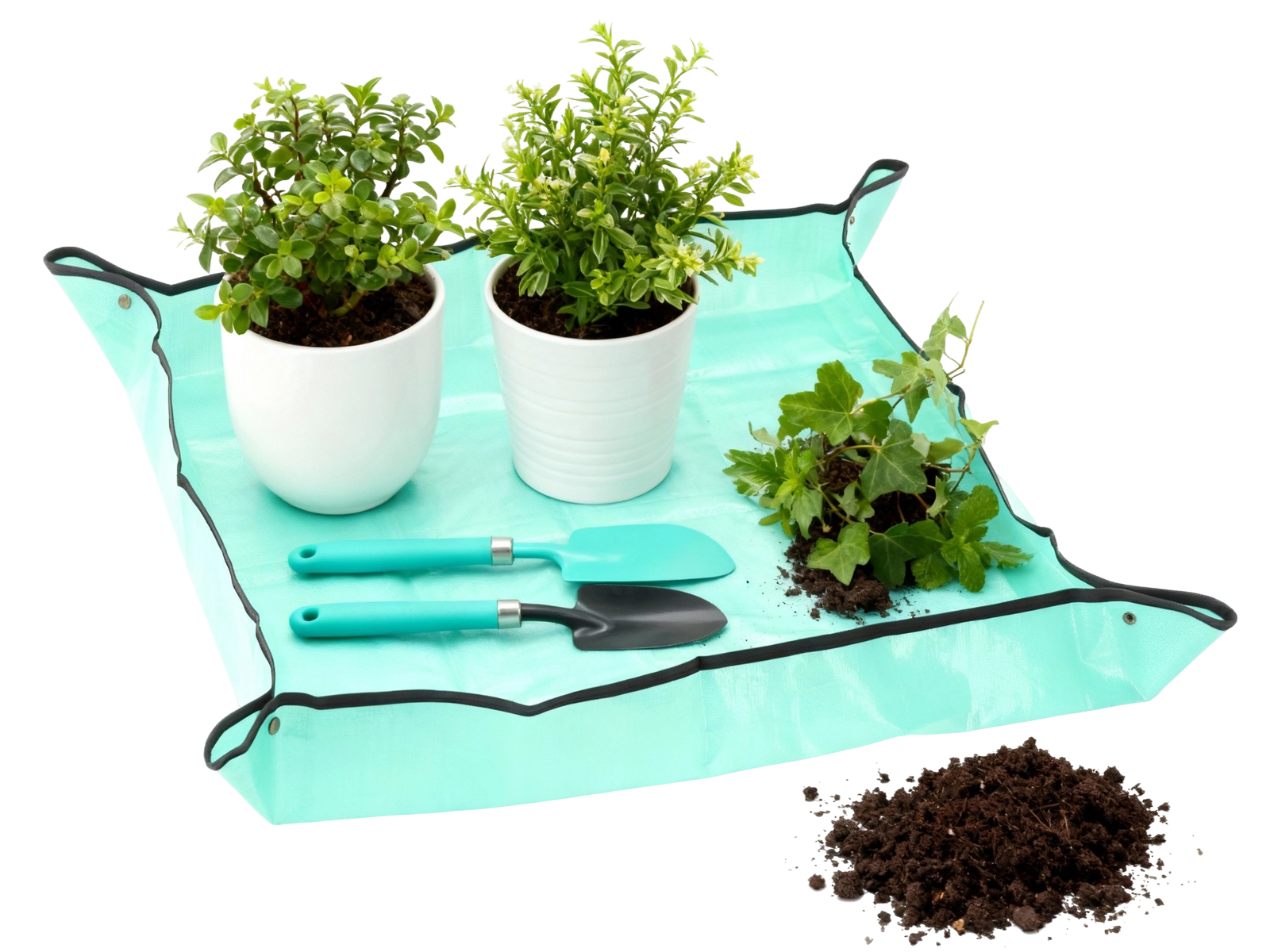 Un tapis pratique pour le rempotage des plantes qui garde votre maison, balcon et jardin propres. Grâce à ses bords relevés, il retient la terre et l’eau et protège la table, le sol et l’appui de fenêtre. Il est imperméable, facile à nettoyer et se plie et se range facilement après usage.