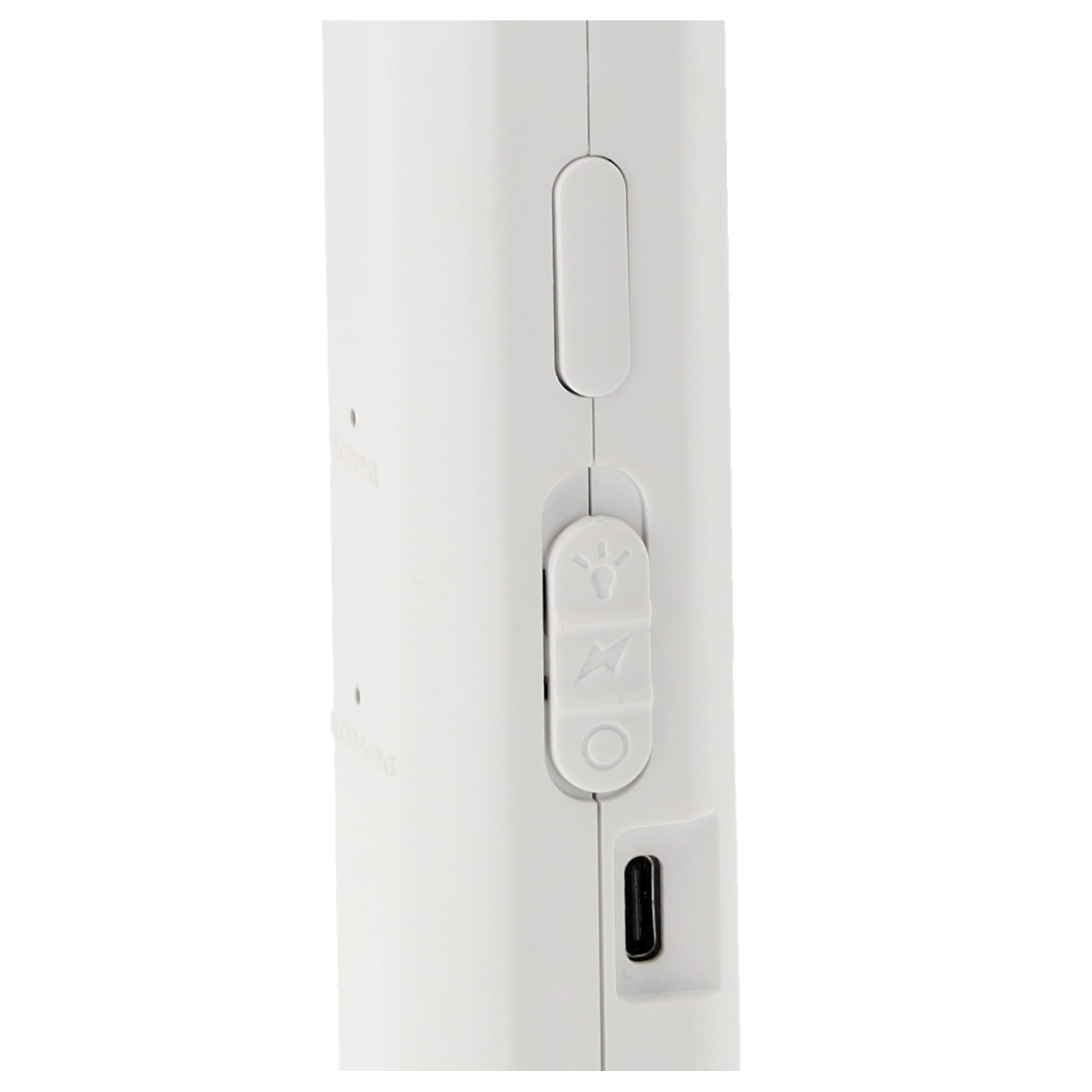Grâce à sa batterie Li‑ion intégrée de 800 mAh, elle offre jusqu’à 5 heures d’autonomie. La recharge prend environ 2–3 heures via le USB‑C universel. Le corps robuste en plastique HIPS est léger et agréable en main, et le câble inclus facilite la recharge à la maison comme en déplacement.