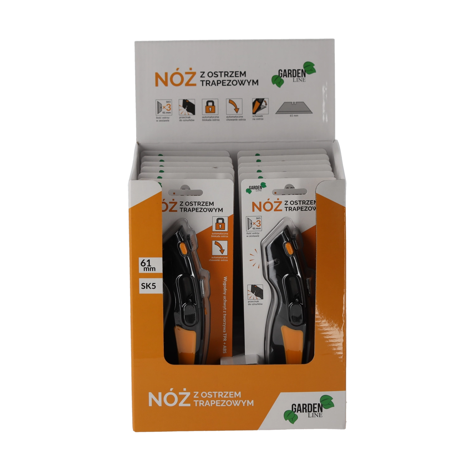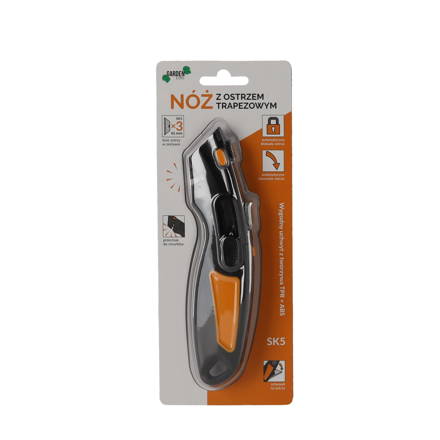 Grâce à l’acier SK5, la lame se distingue par une grande dureté et une longue durée de vie. Un compartiment pratique à l’intérieur de la poignée accueille 2 lames trapézoïdales de rechange, pour un remplacement immédiat sans perte de temps.