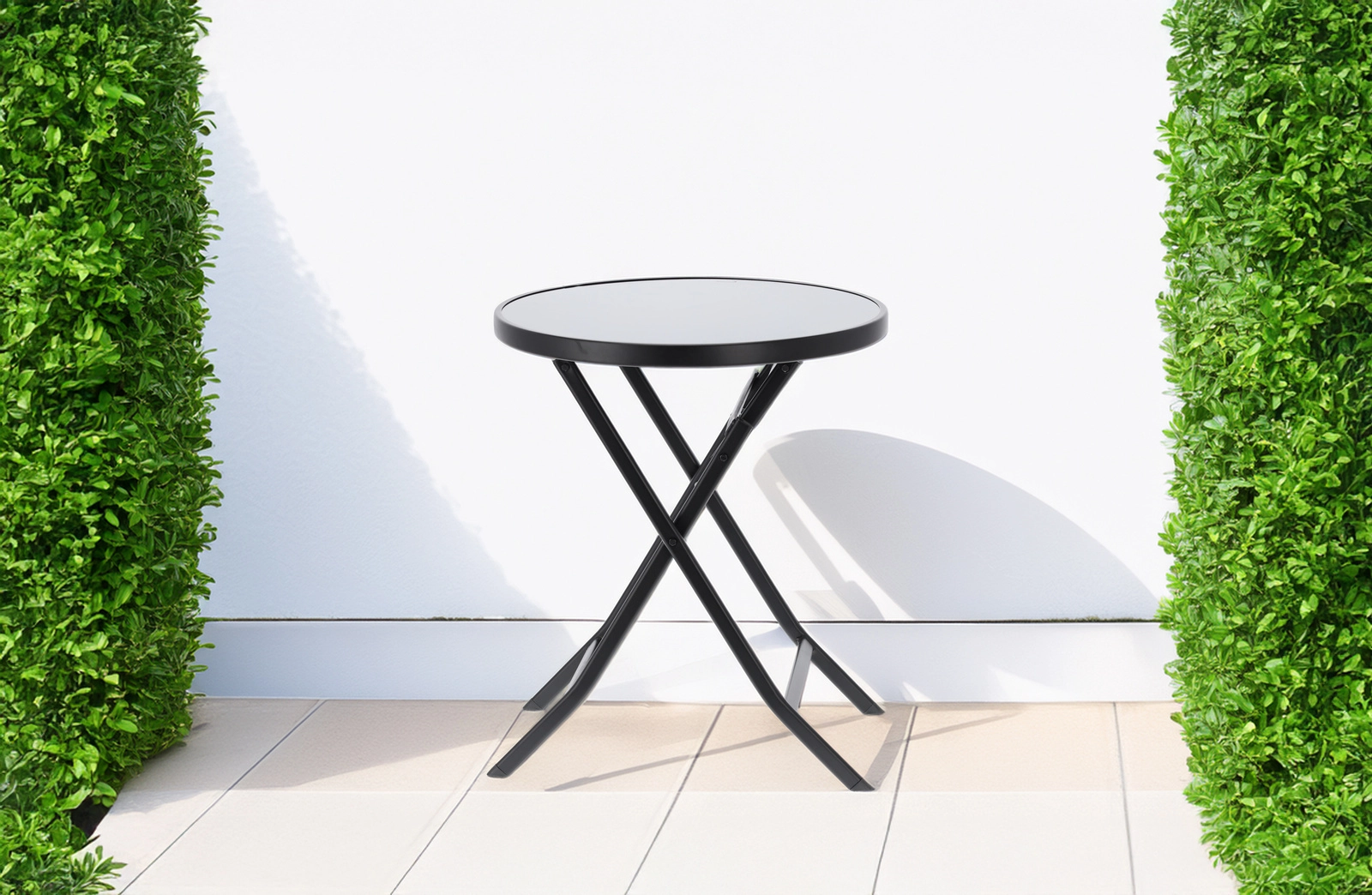 Apportez style et fonctionnalité à votre espace extérieur. Cette table de jardin ronde est fabriquée en acier de qualité avec revêtement par poudre, offrant stabilité et résistance aux intempéries et à la corrosion. Son plateau en verre trempé de 5 mm au fini noir est élégant et facile à nettoyer.