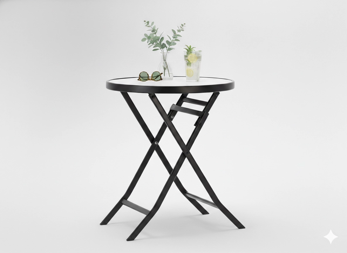 Grâce à sa structure pliante, la table se replie et se range rapidement – elle économise de la place sur le balcon comme au débarras. Elle convient comme table d’appoint pour un coin salon, petite table bistro pour la terrasse ou alliée pratique lors des fêtes au jardin.
