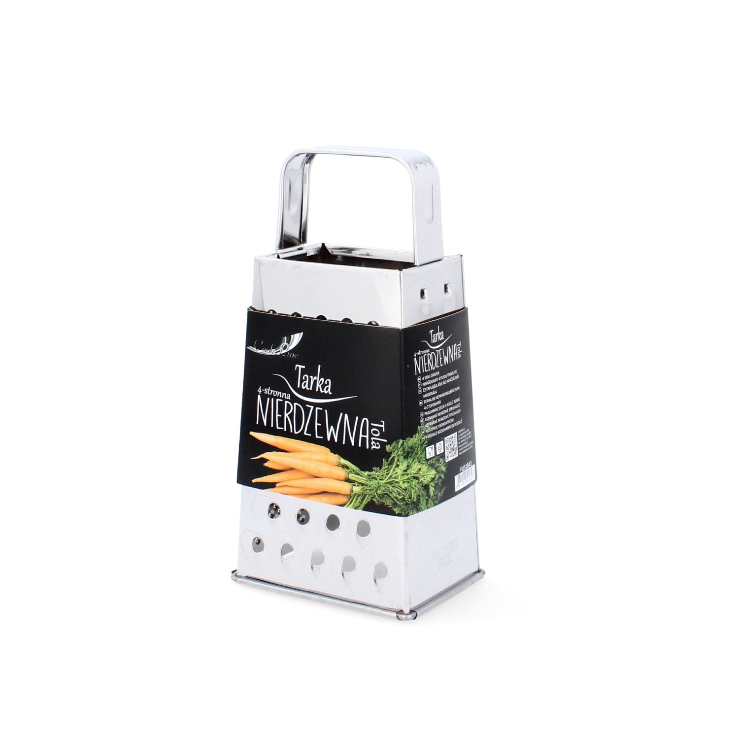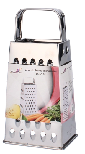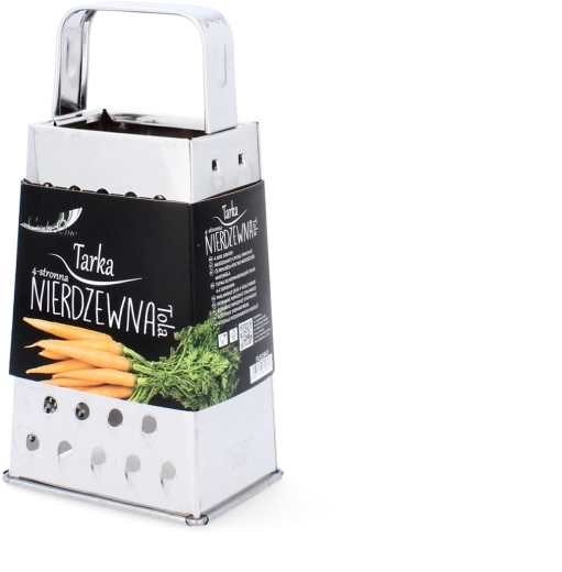 La râpe inox à quatre faces Tola est un allié polyvalent pour chaque cuisine. Grâce à ses quatre surfaces fonctionnelles, vous préparez facilement des ingrédients finement ou grossièrement râpés, des tranches ou des copeaux. Sa construction robuste en acier inoxydable assure une grande résistance et un entretien aisé.