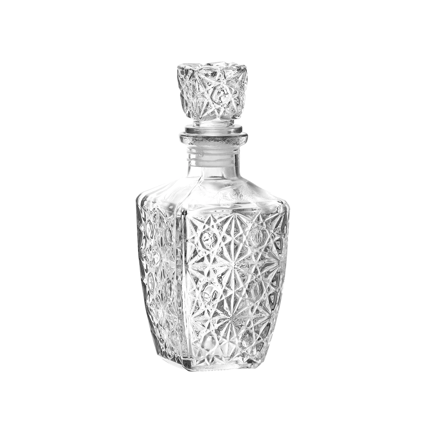 Élégante carafe en verre décorée d’une capacité de 415 ml, idéale pour une présentation raffinée des liqueurs et des vins maison. Fabriquée en verre épais imitant fidèlement le cristal, elle offre une apparence luxueuse et une grande durabilité. Le bouchon en verre avec joint d’étanchéité aide à préserver la fraîcheur, l’arôme et le goût de vos boissons et apporte une touche d’élégance à tout bar domestique.