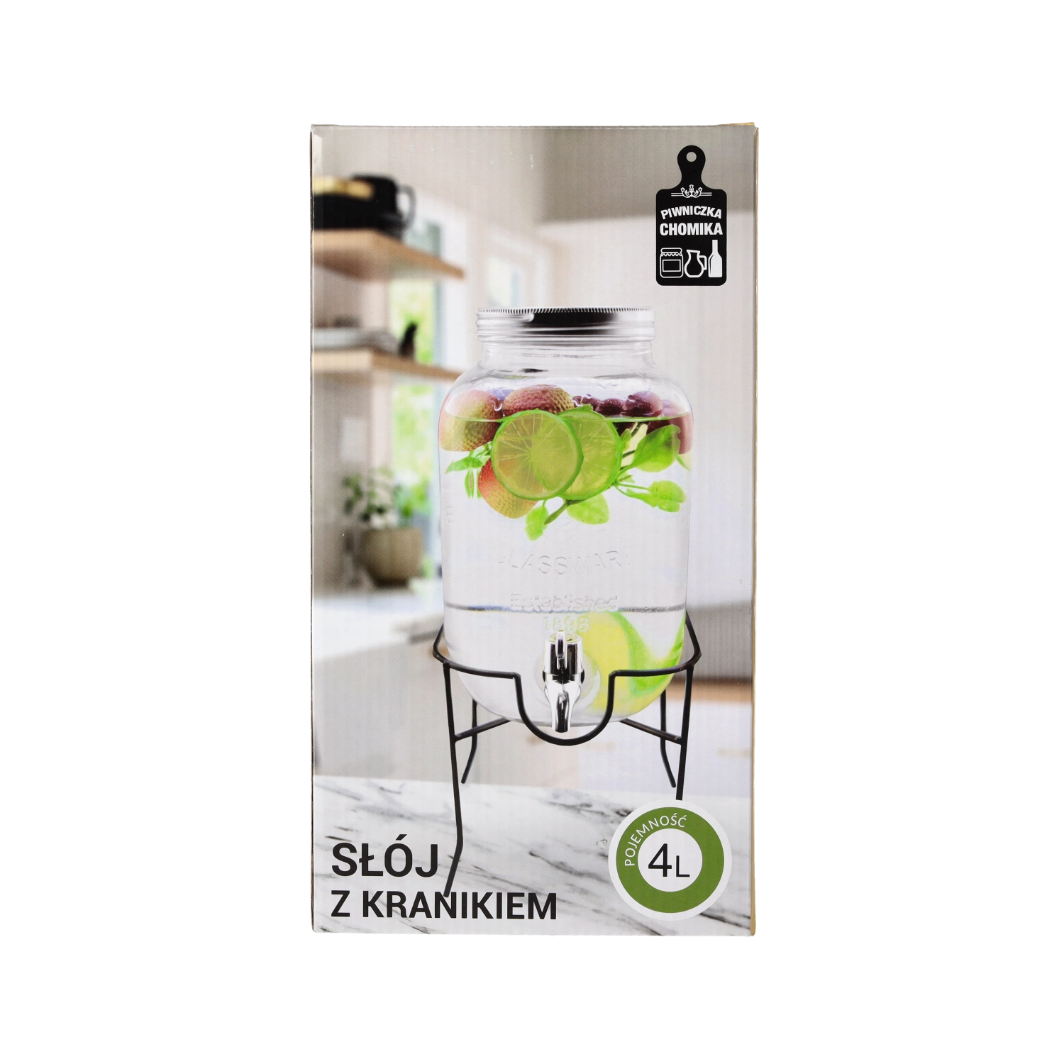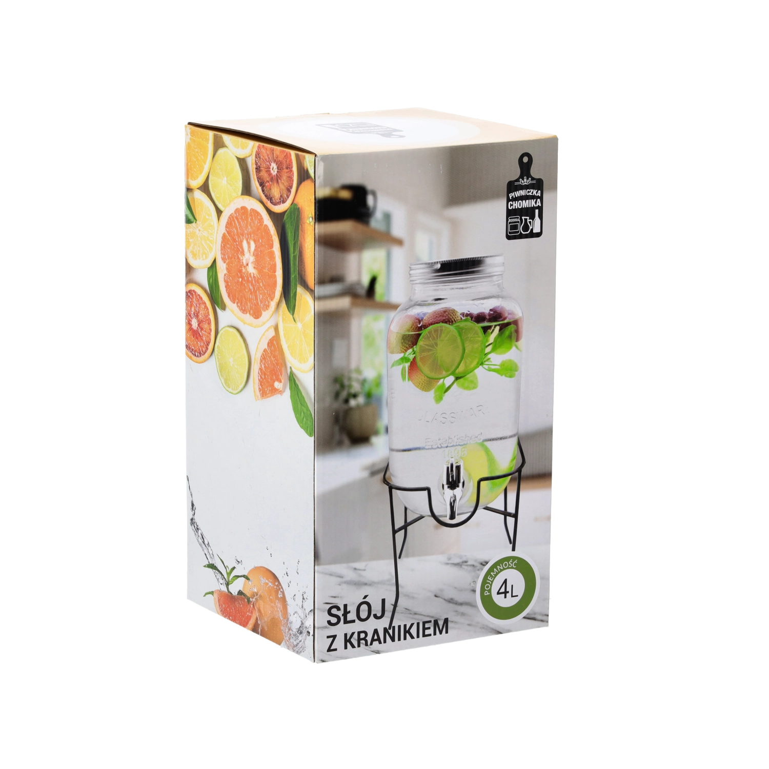 Le support métallique stable élève le récipient à une hauteur idéale pour verser facilement, même dans des verres ou carafes hauts. Le verre transparent convient aux eaux infusées aux fruits, limonades maison et thés glacés, et devient un élément décoratif de votre cuisine, salle à manger ou espace extérieur.
