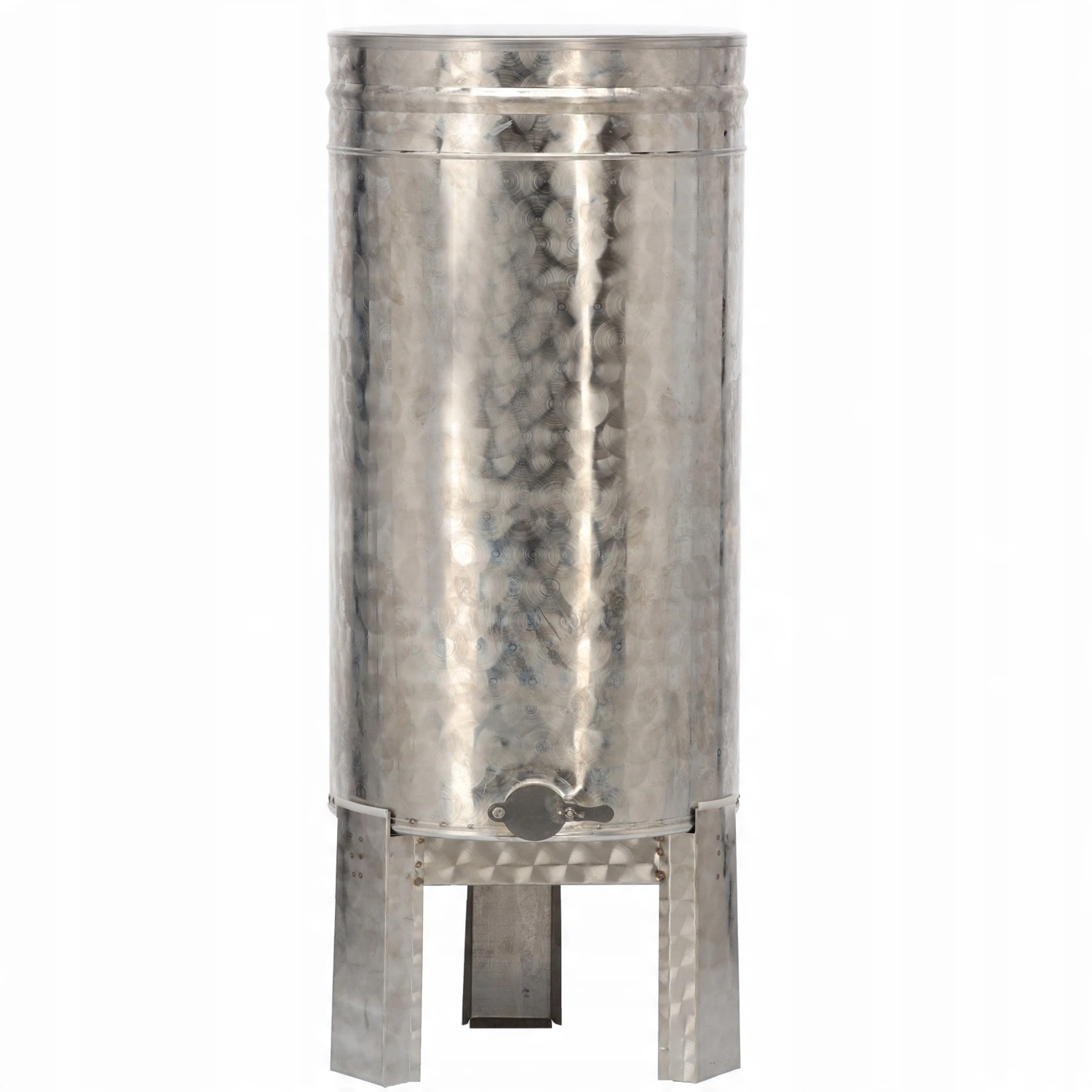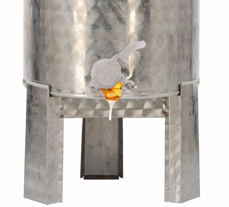 Récipient robuste en acier inoxydable avec finition martelée, résistant à la corrosion, facile à nettoyer et parfaitement adapté à tout atelier d’apiculture. Grâce au support surélevé, vous disposez d’une garde au sol suffisante sous l’orifice de vidange pour les récipients, garantissant un soutirage propre et sans déversement.